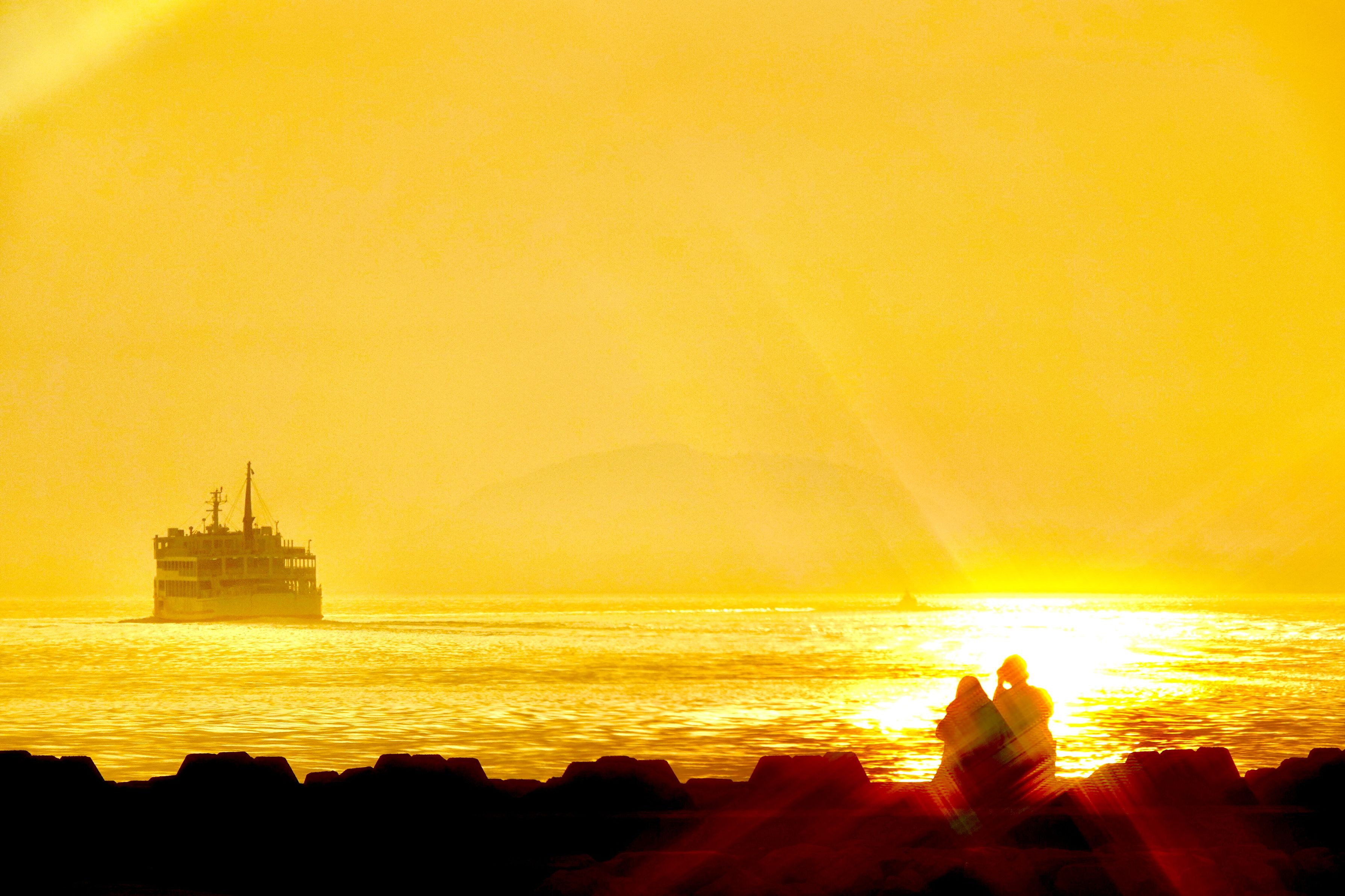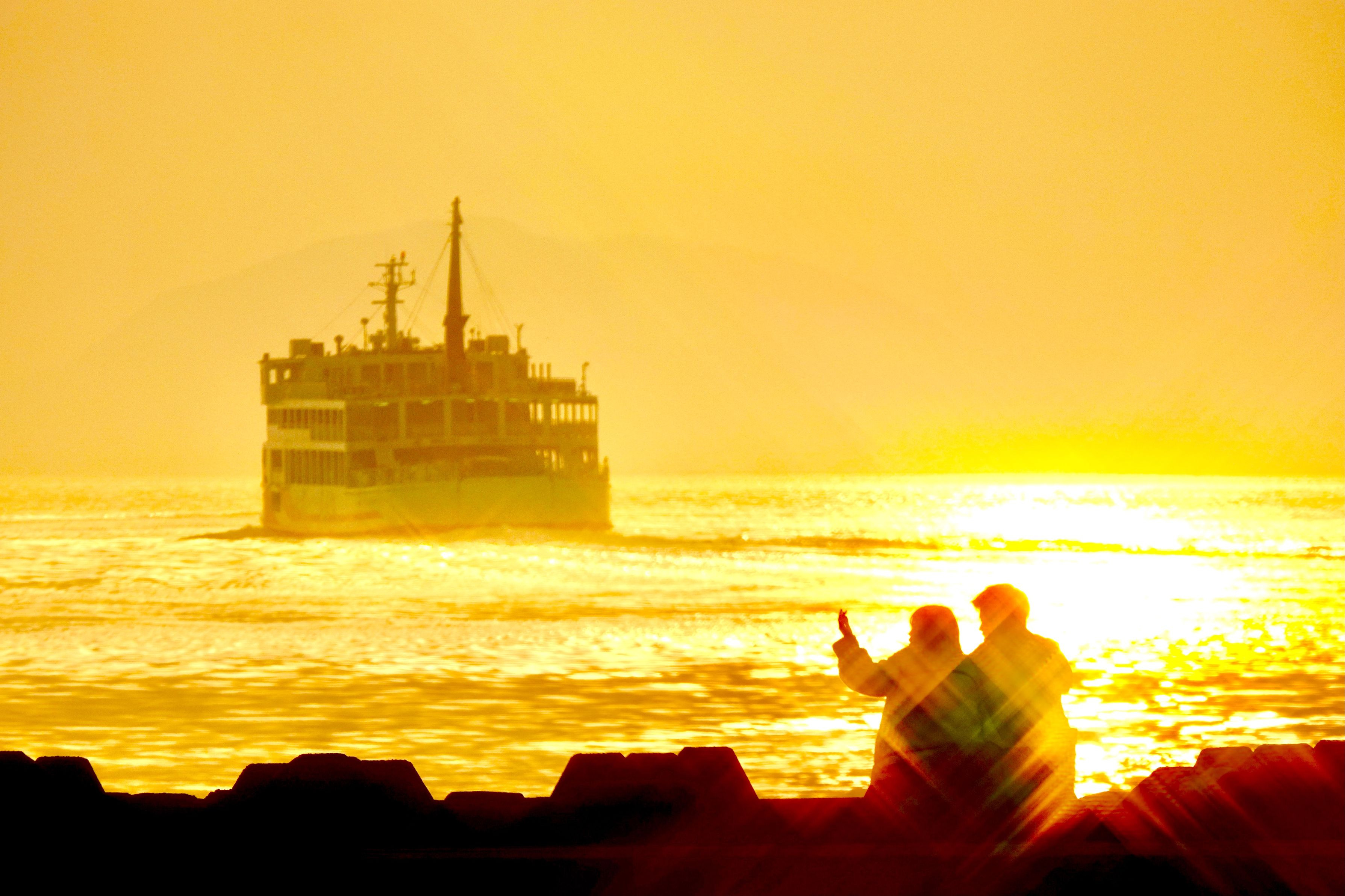 夕暮れの海光