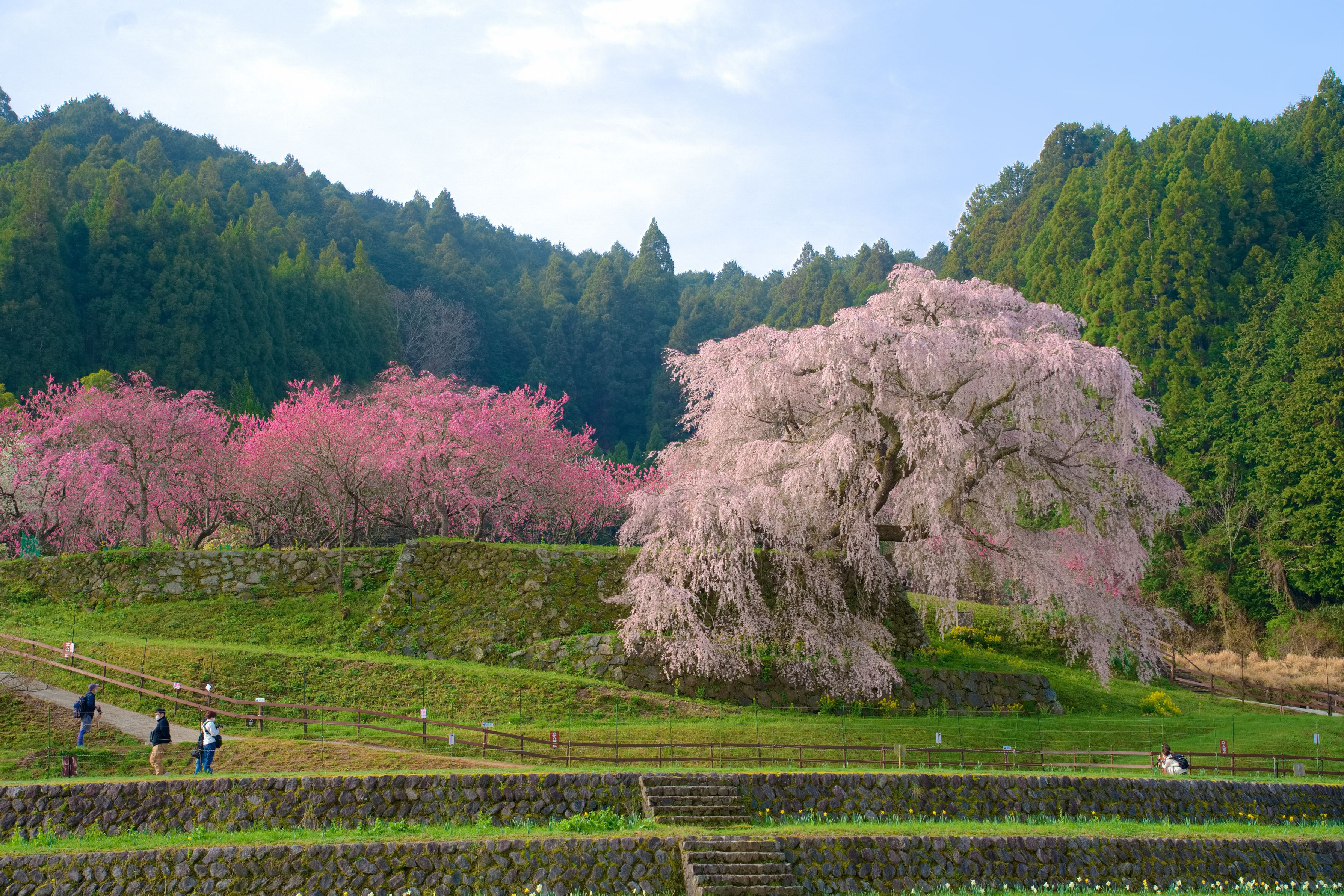 後ろの木はモモの木だそうで、濃いピンクと薄いピンクの対比がとても綺麗でした