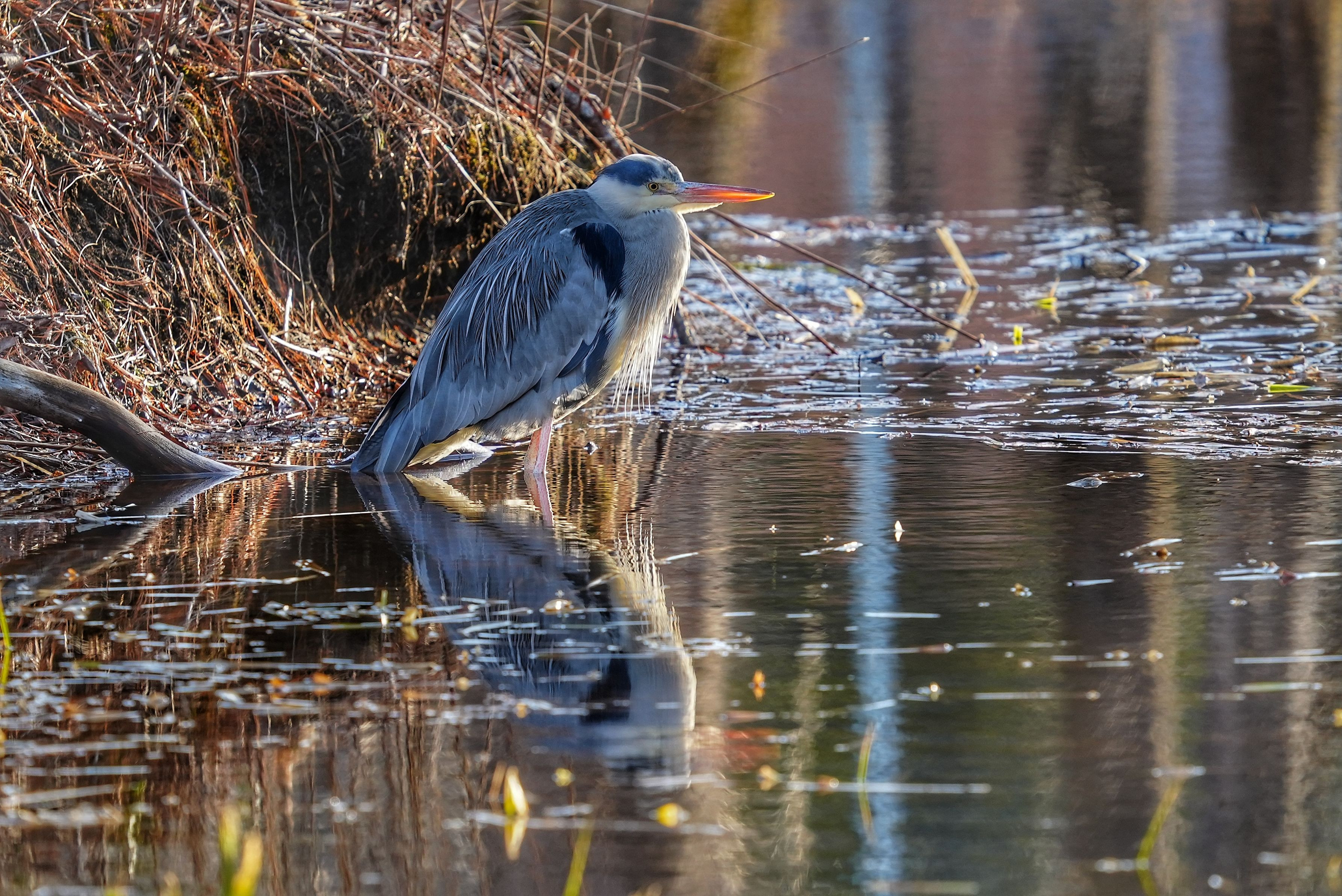 池の畔で佇むアオサギを切り取ってみました