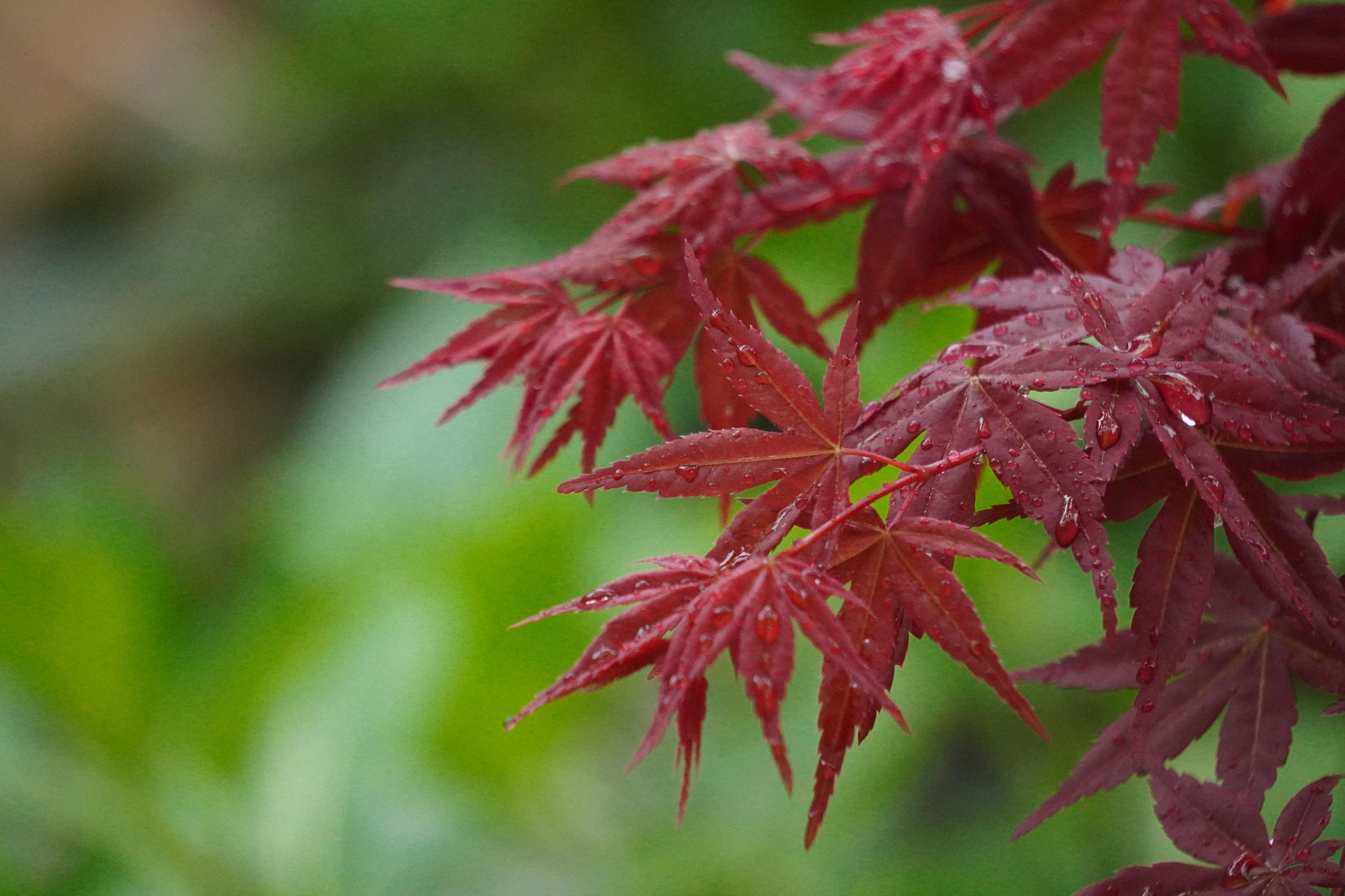雨に濡れた葉っぱが鮮明に見えたので・・・ このモミジは、秋の紅葉よりも色が綺麗なので、 次第に緑色になるのが惜しいです。