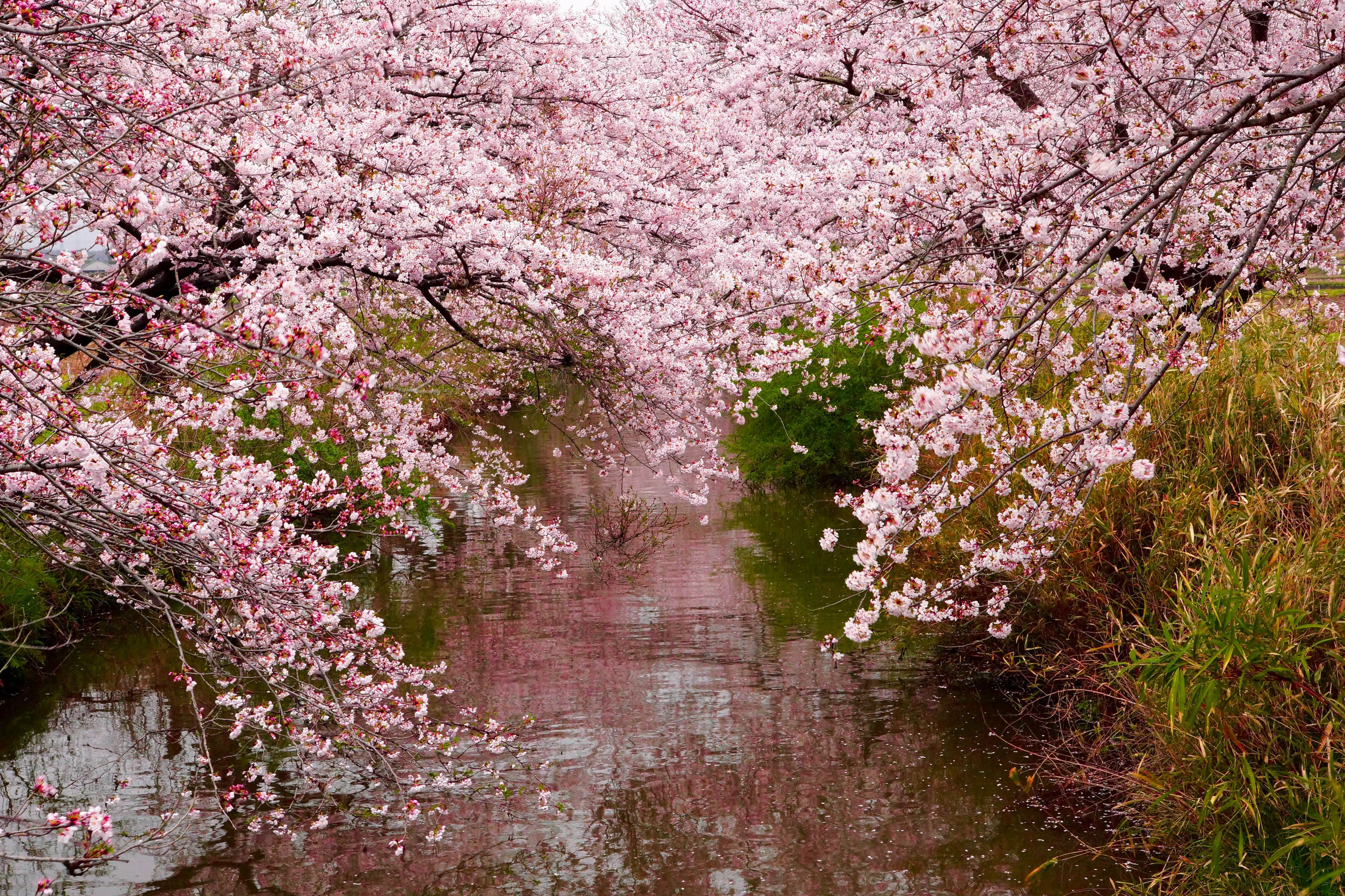 小川の両岸から咲き誇る桜。春爛漫の一時でした
