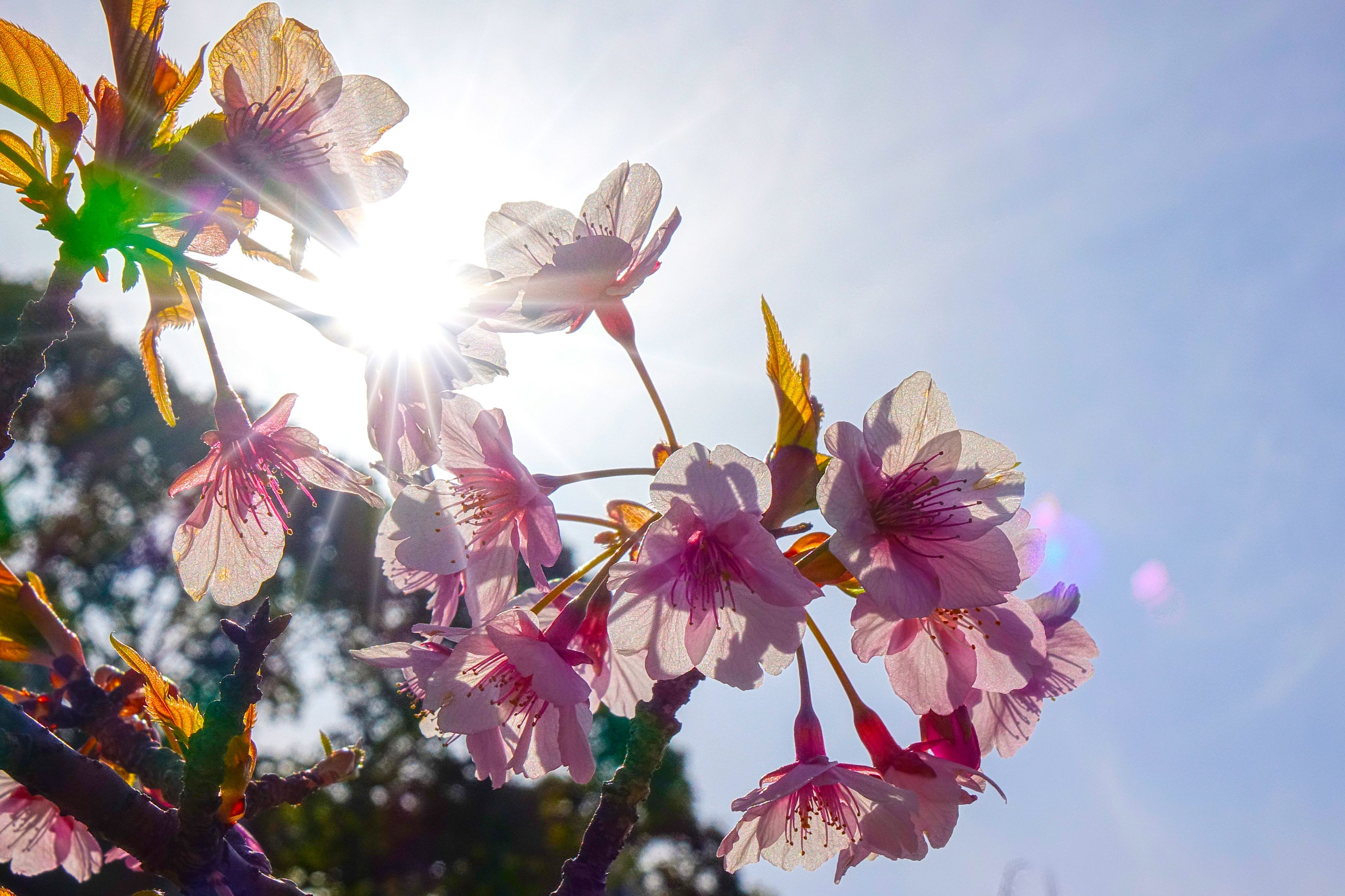 サクラの花が逆光で綺麗に透き通って見える。
