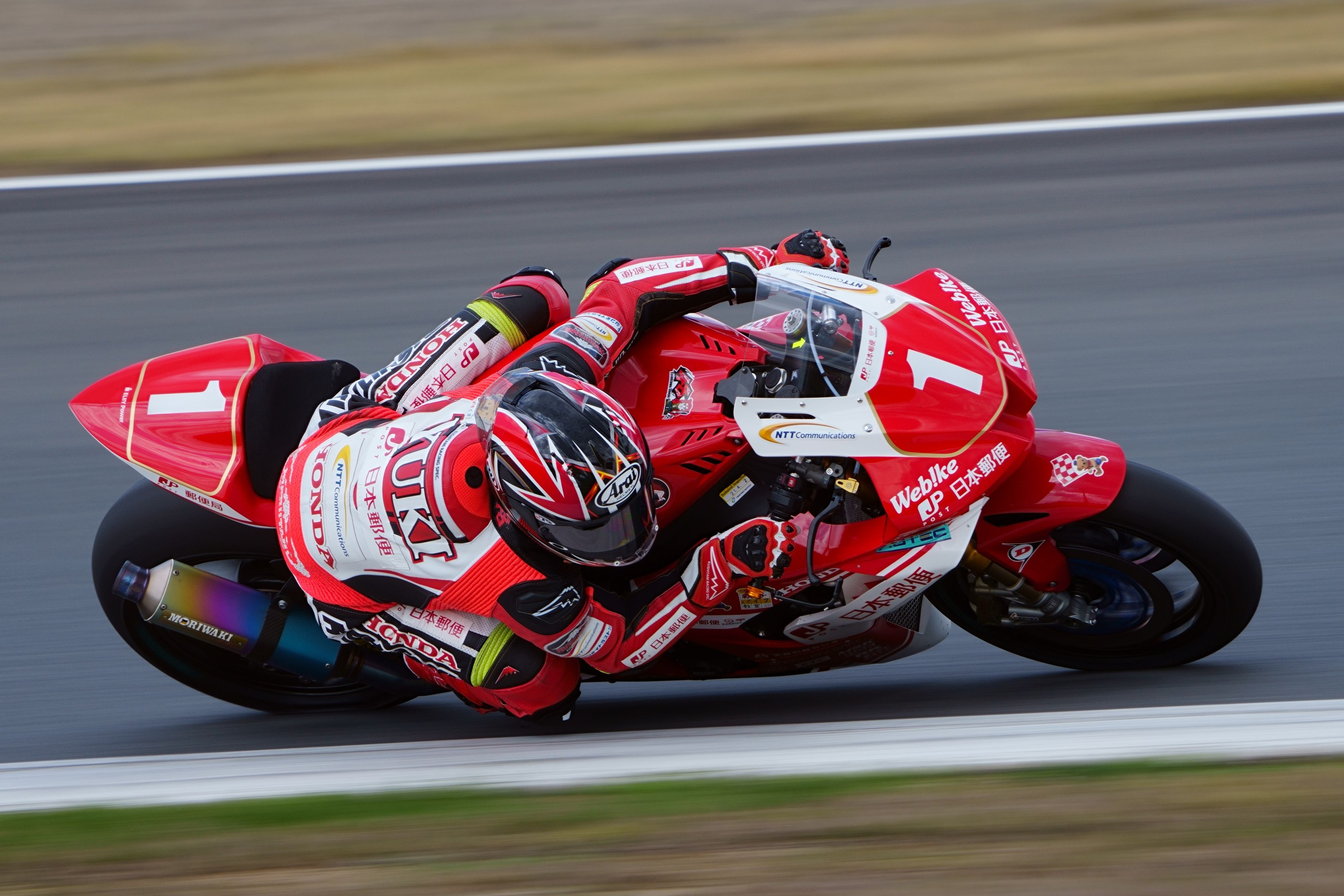 2021 全日本ロードレース選手権第1戦もてぎ ST1000 クラスで優勝した 日本郵便 HondaDream TP の高橋裕紀選手です。 写真は予選のものですが、決勝レースではピットレーンスタートから怒涛の追い上げをみせ、まさかの 35 台ごぼう抜きという圧巻の走りでした!