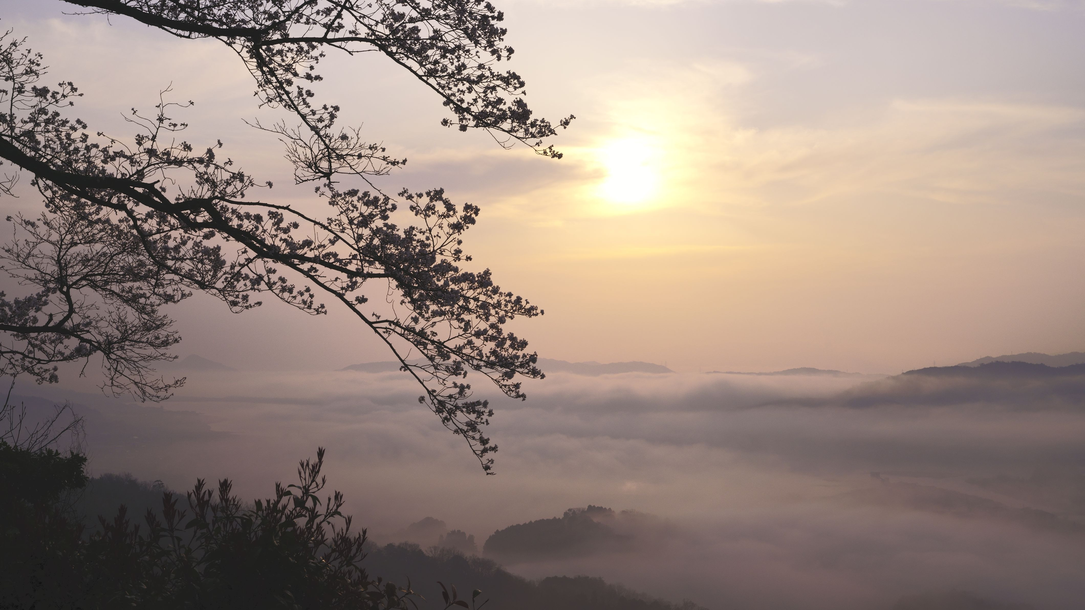 早朝ロケで雲海と桜と朝日に出会すことができました!! 天橋立は奥の方に少しだけみえてます。