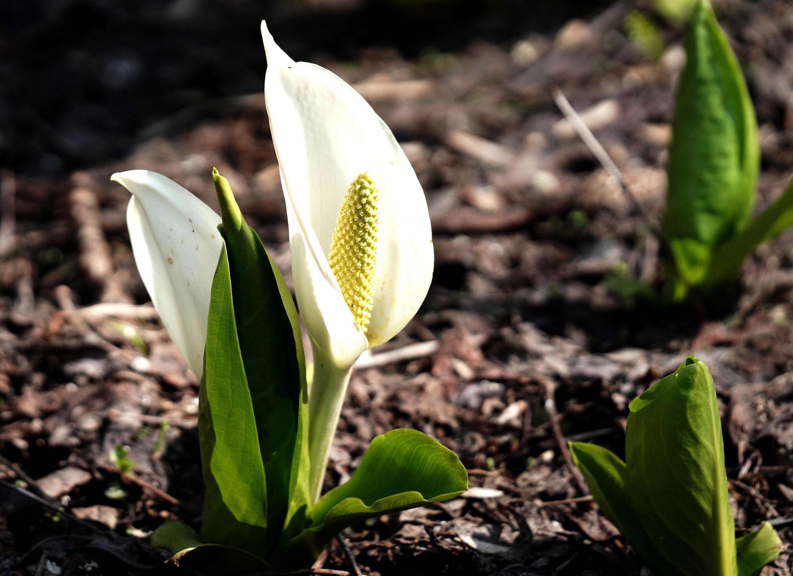 可愛く咲きだした水芭蕉 少し水不足ですが