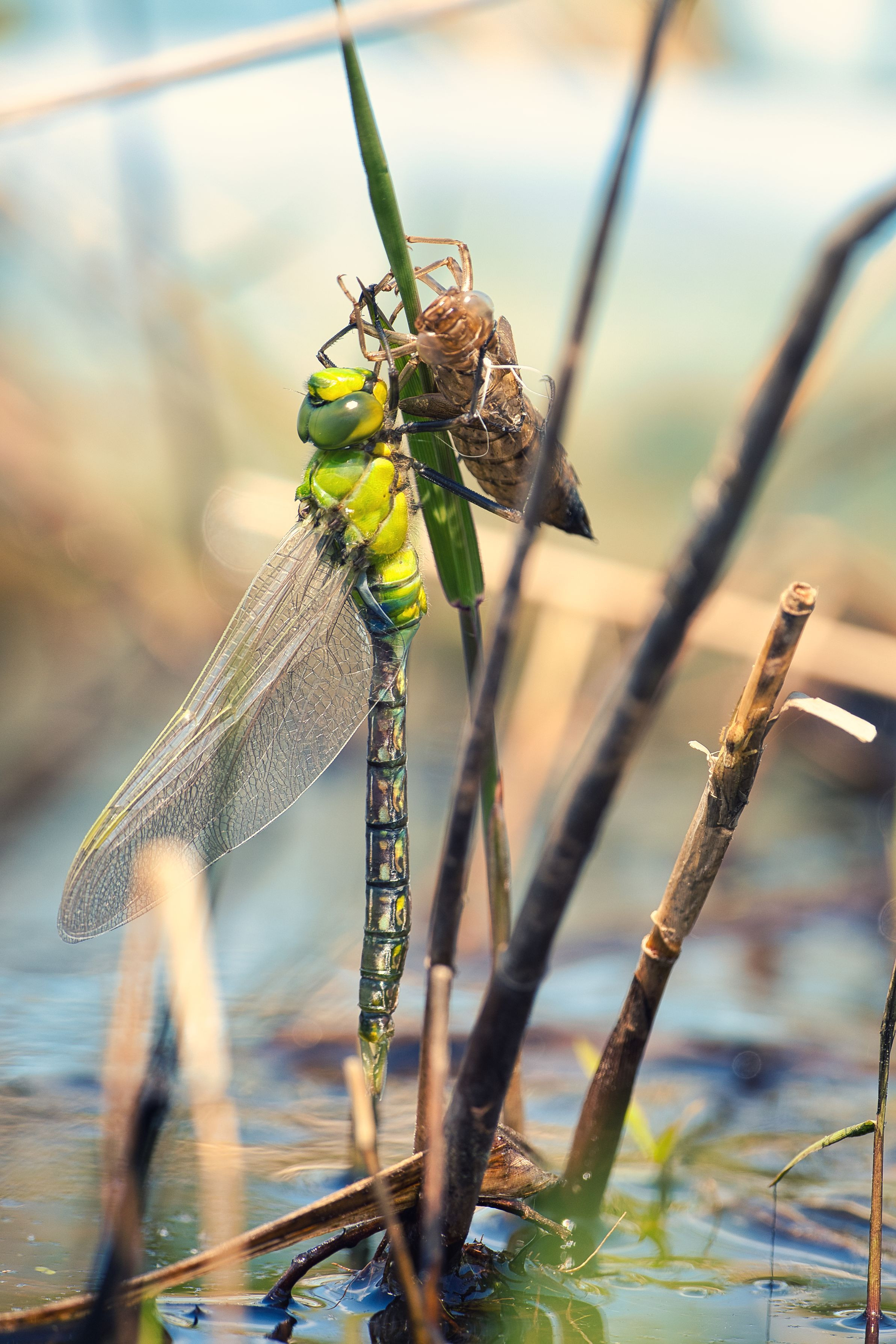野鳥を撮影に訪れた公園でギンヤンマの羽化をみることができました。 こちらの公演ではトンボの保護活動をしているようでした。