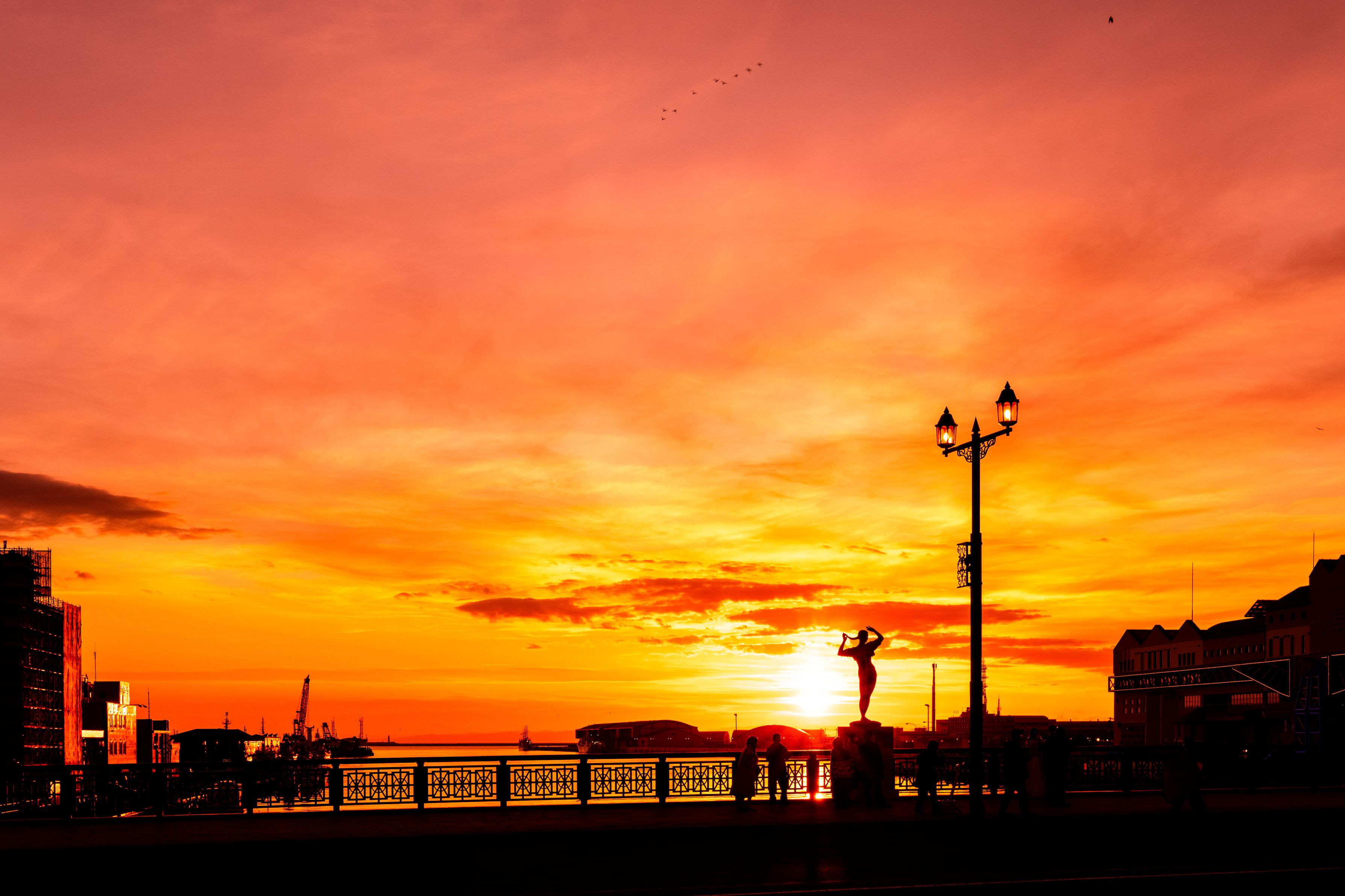 世界三大夕景、釧路の幣舞橋からの夕日です。 好天に恵まれ、きれいな夕日が撮れました。