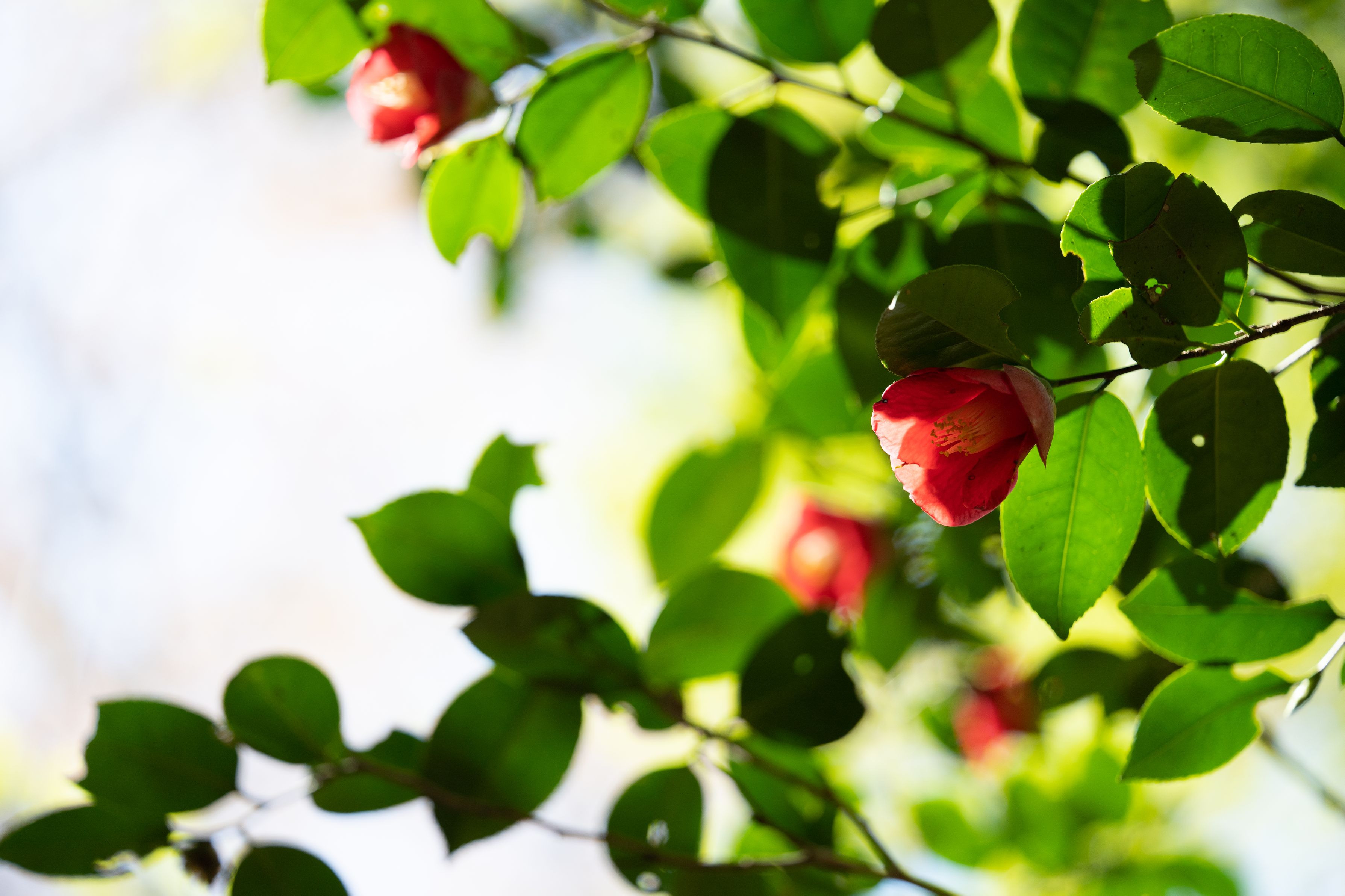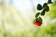 若葉が萌える山に、椿の花が鮮やかでした。