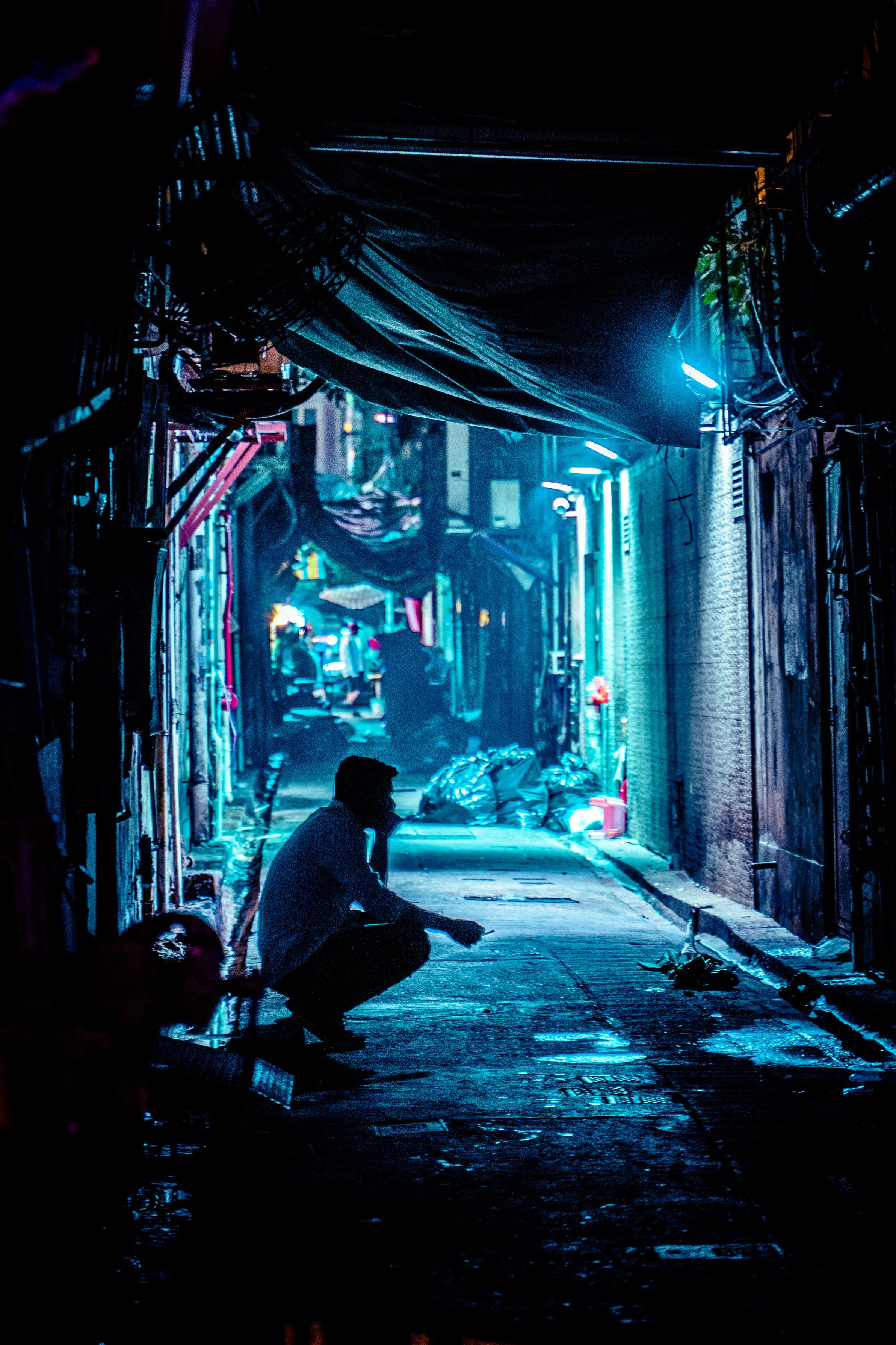 香港の路地裏にて。