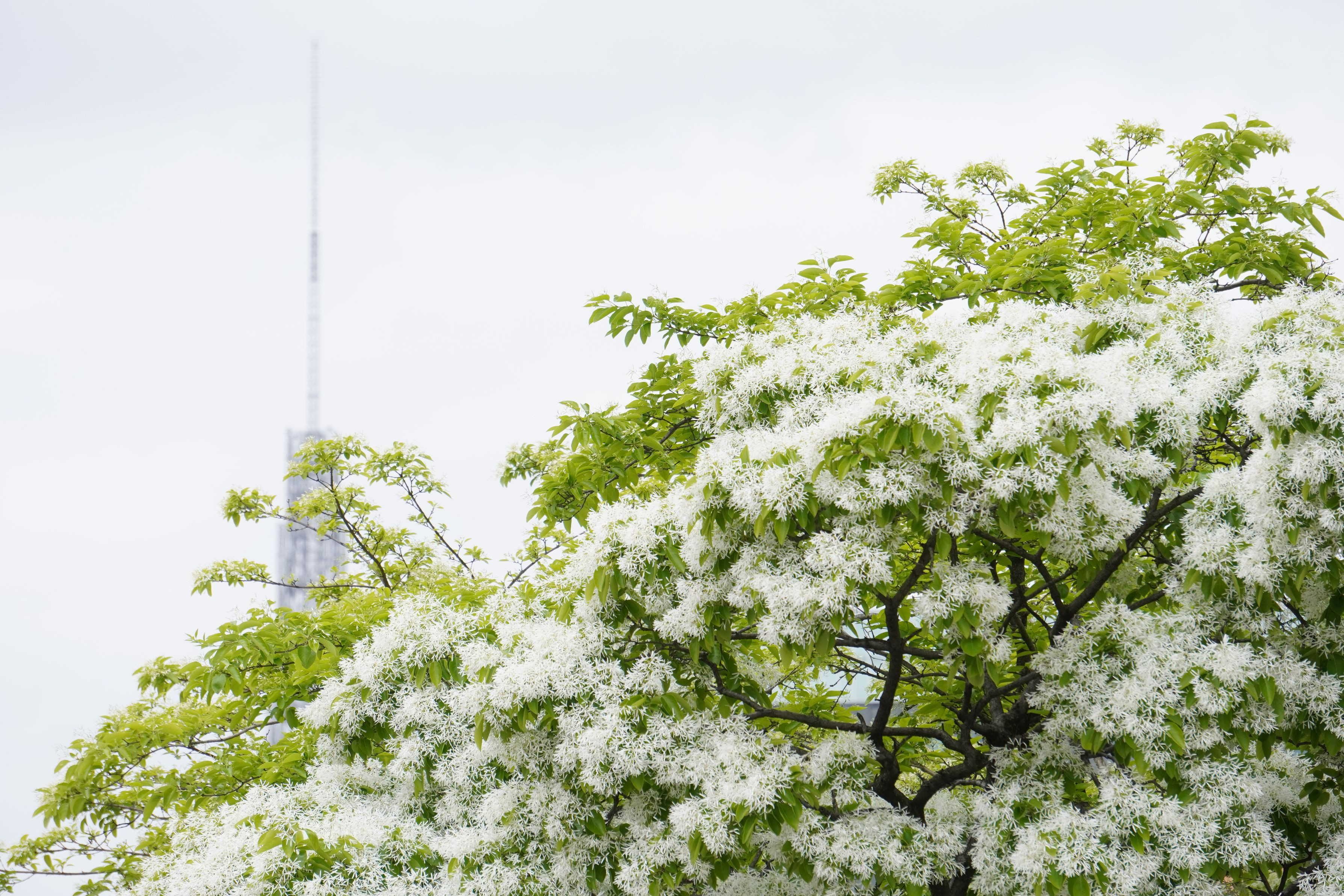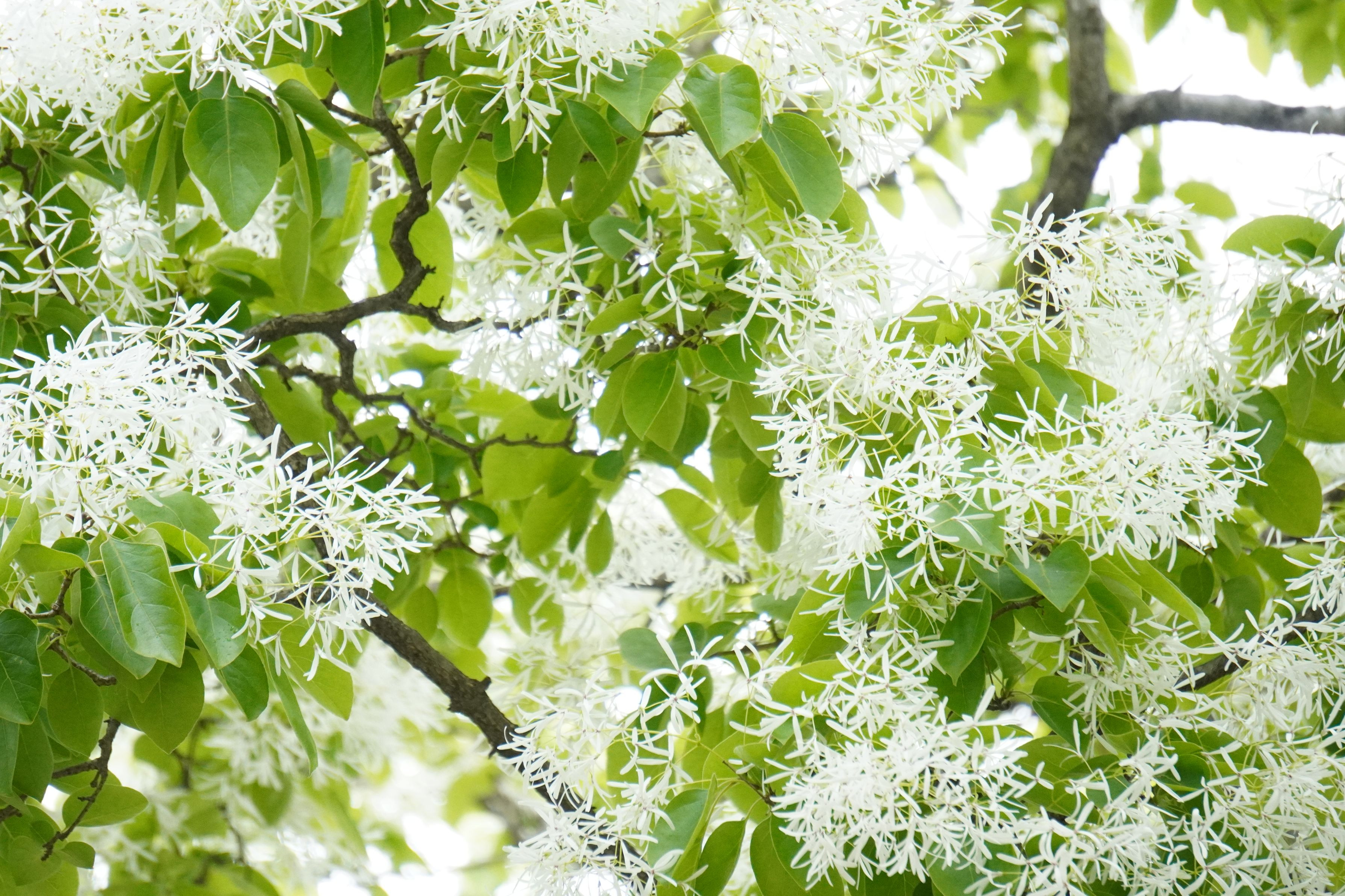 モクセイ科ヒトツバタゴのことです。 初めてこの木を見た時は、木にまるで雪をかぶったようで、目が釘付けになりました。 市内のあちこちで、街路樹として植えられているのを見かけます。