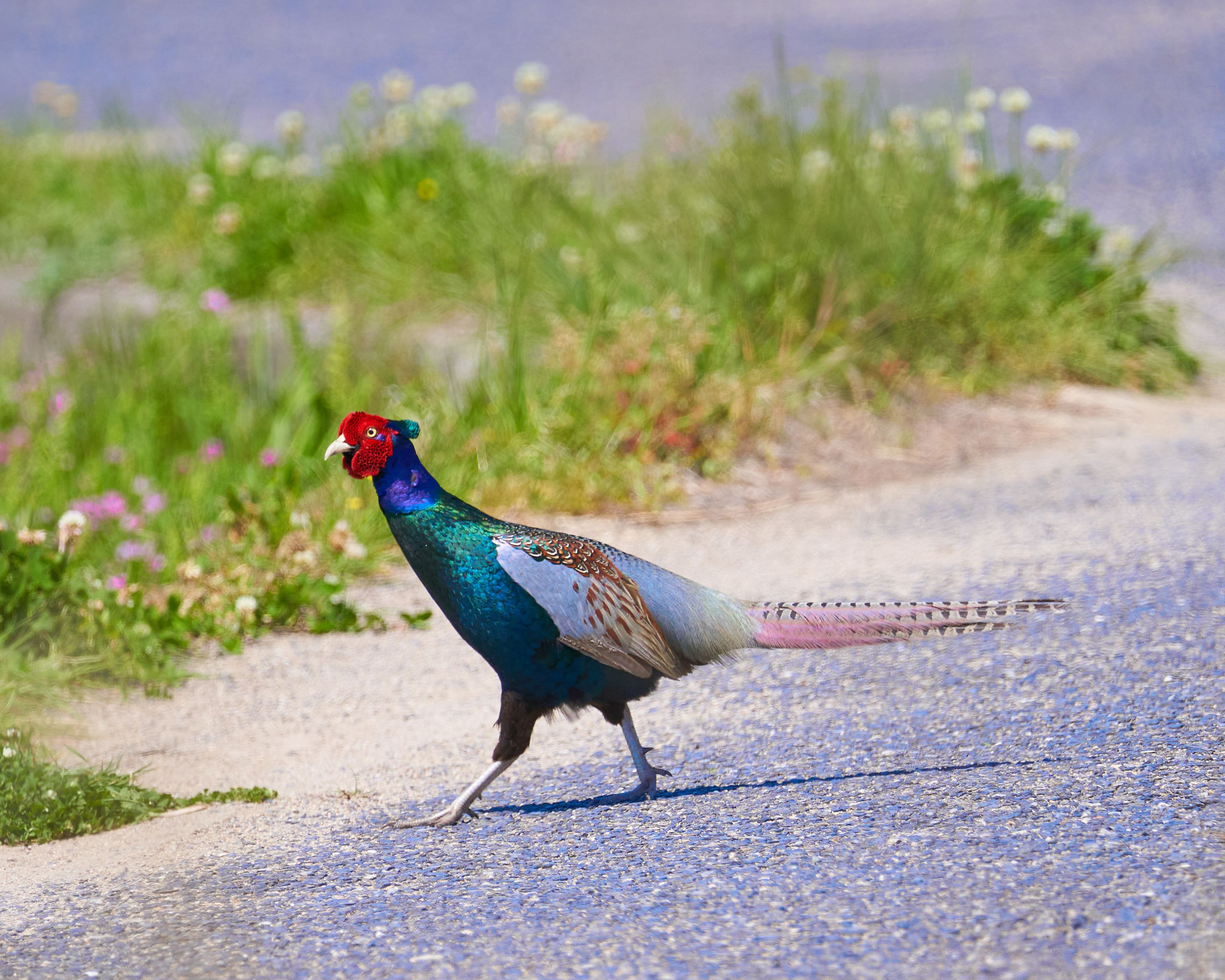 田んぼのあぜ道で発見 初めて撮りました。 国鳥というだけ綺麗です。 #キジ