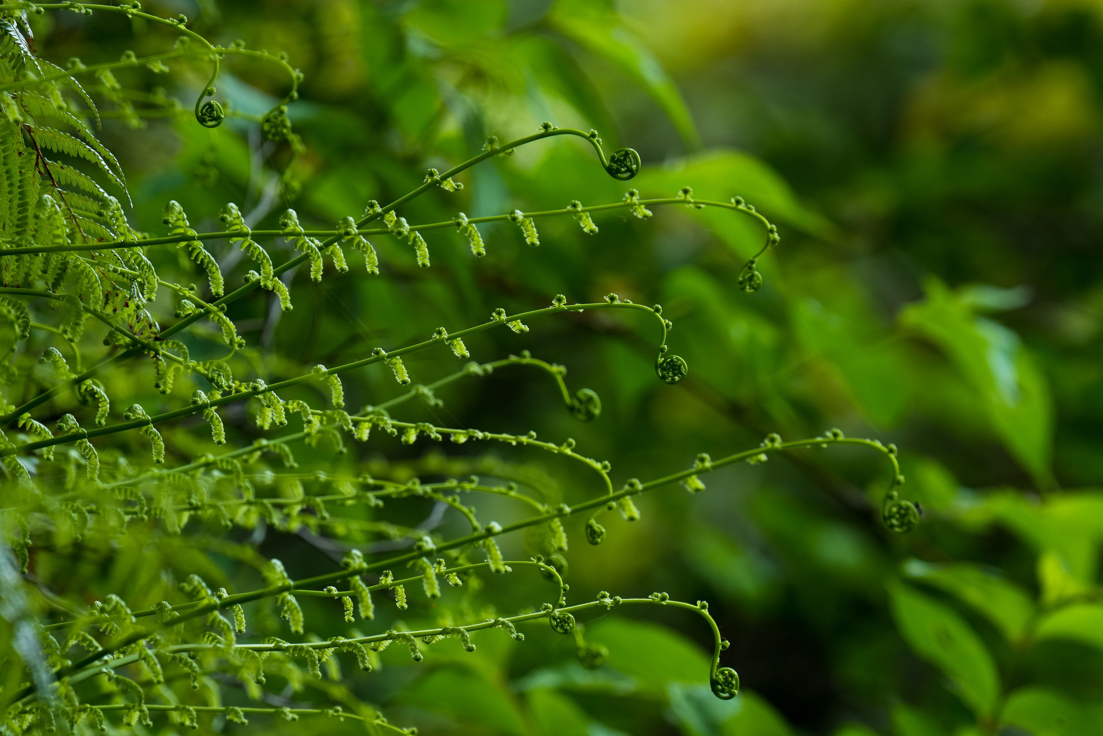 林の中で綺麗な#シダ#の若葉をみました 横へ横へとぐるぐる巻きが伸びる姿が美しかったです