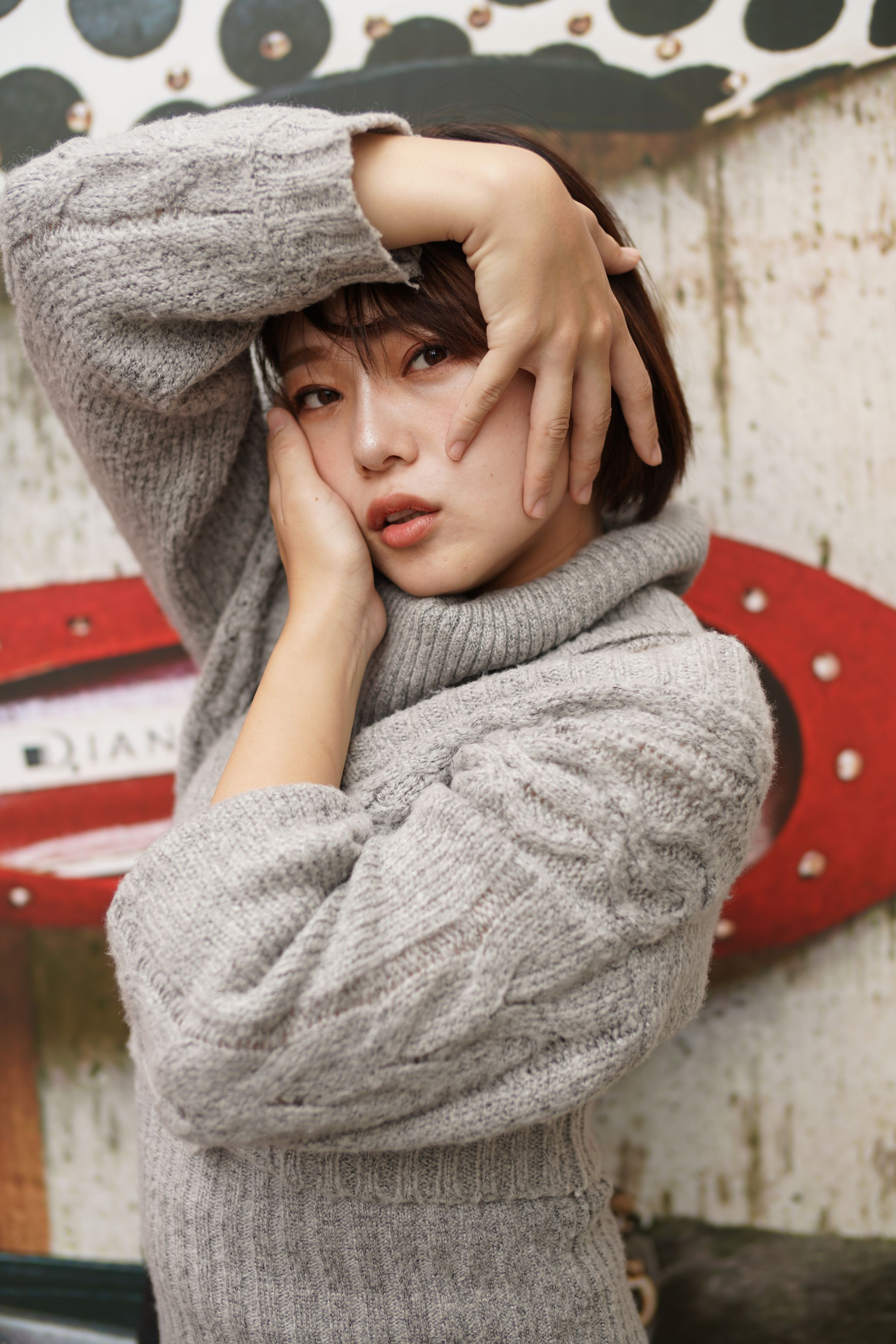 色付く椛の下の櫻井まちサン