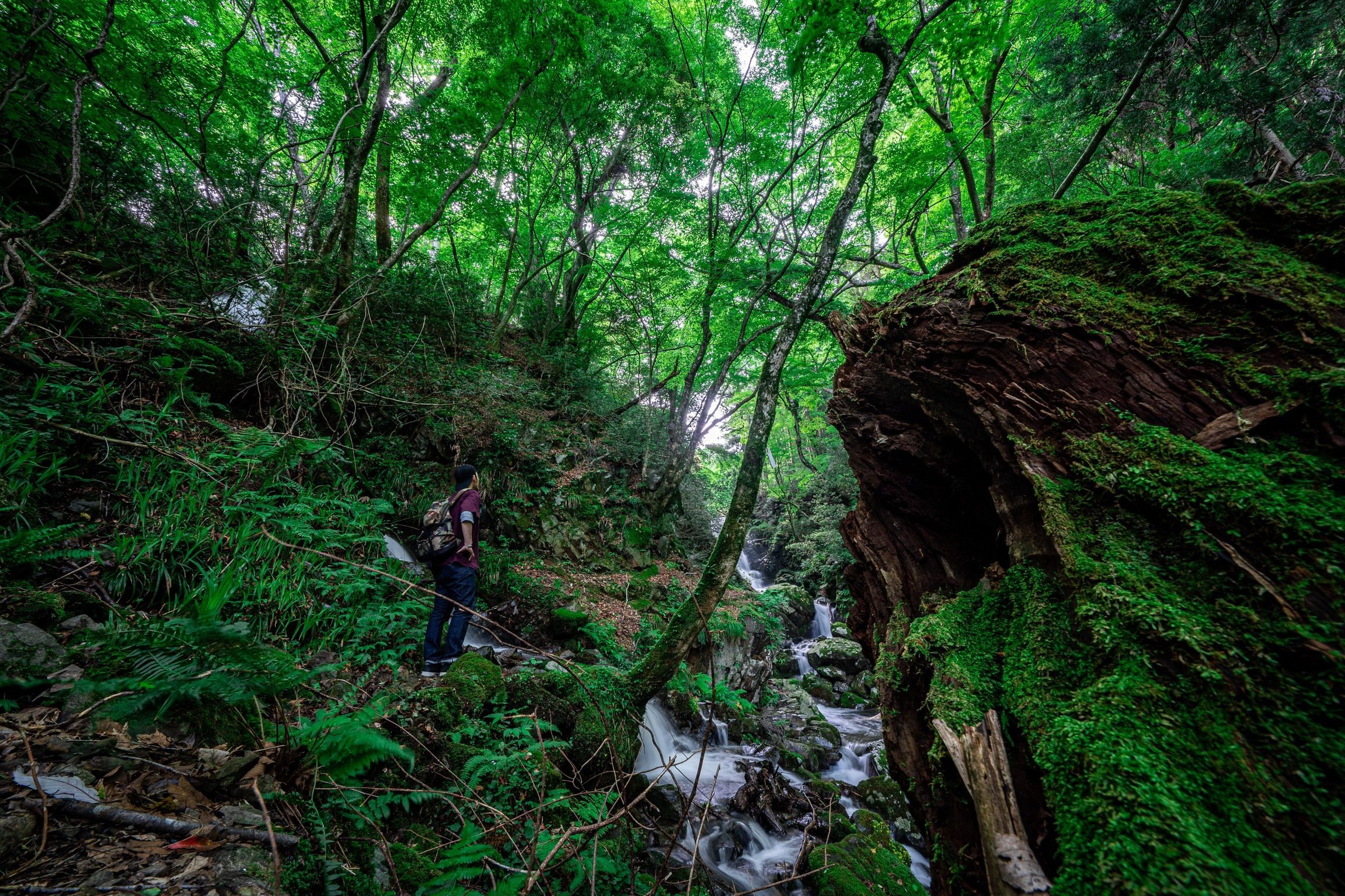 近くの滝に行きました。 なかなかの絶景にテンションが上がり 自撮りしました。 迫力が出る様に超広角で。 遠近感が不思議な写真になりました。