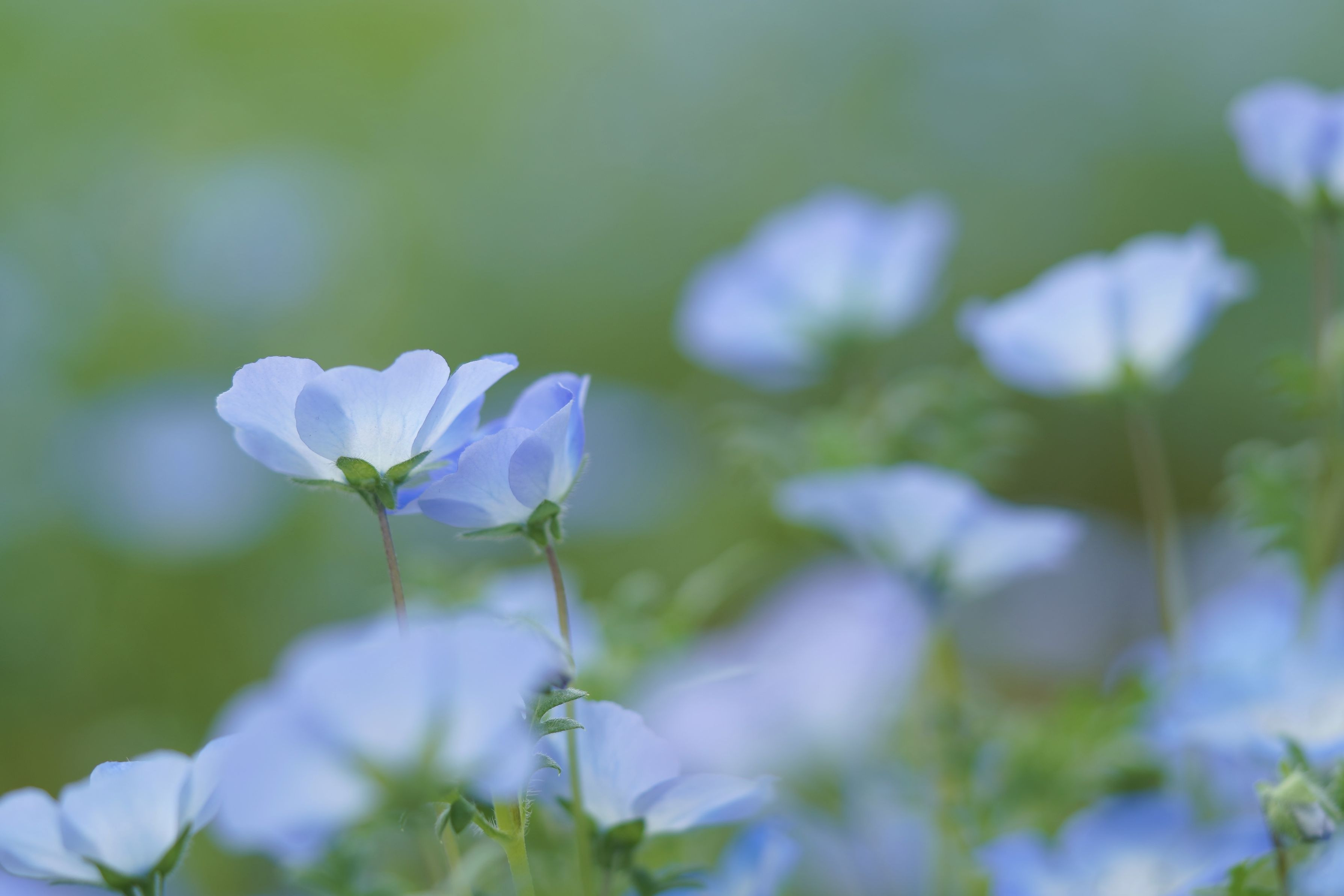 ふたりでひなたぼっこしていたら、いつの間にか頭が肩にことん…。静かな寝息が聞こえてくるだけの、幸せの時間です。 春の午後、ネモフィラが寄り添っている姿を見つけました。 カップルか親子か、優しく思い合っている二人のように感じられて、見ているこちらが幸せになりました。 ※クロップ撮影しました
