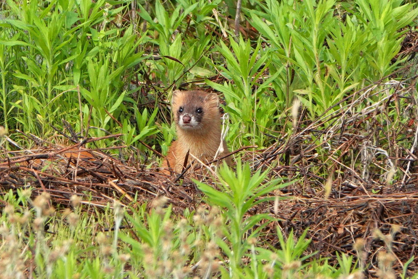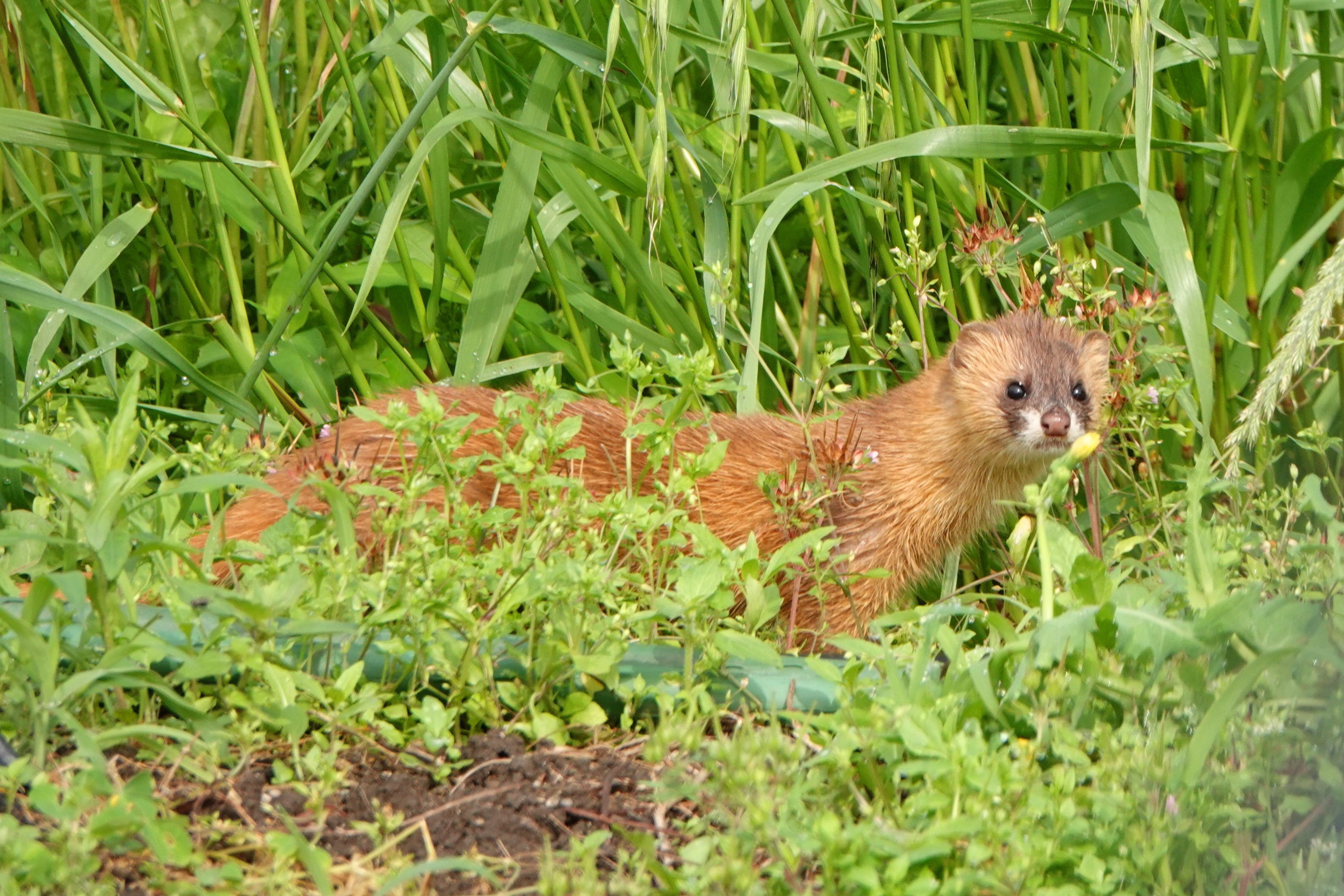 いつもの田んぼ、居るけどなかなか撮らせてくれない、イタチ君。 今日ははっきり姿を見せてくれました。
