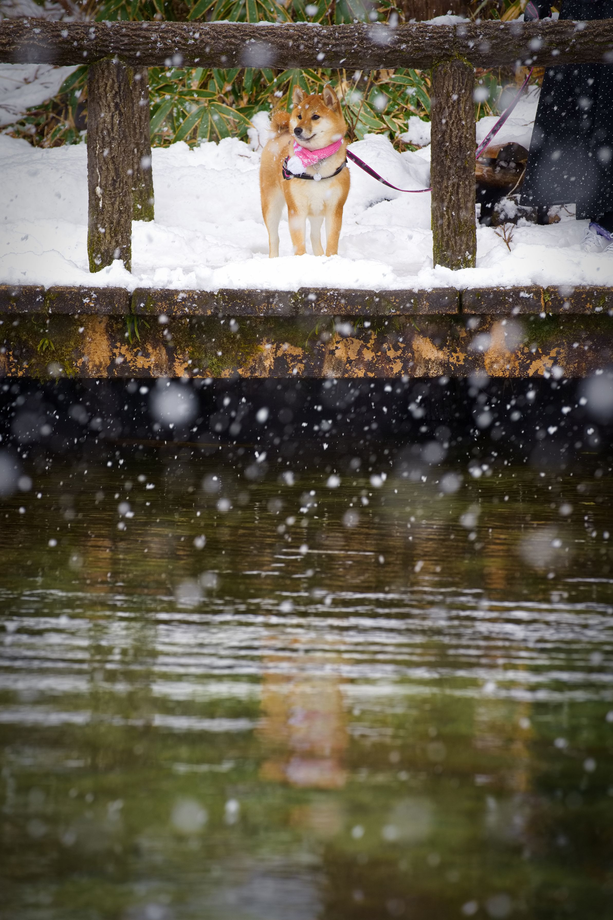 岐阜のモネの池です。 牡丹雪と柴犬が意外にもマッチしてます。
