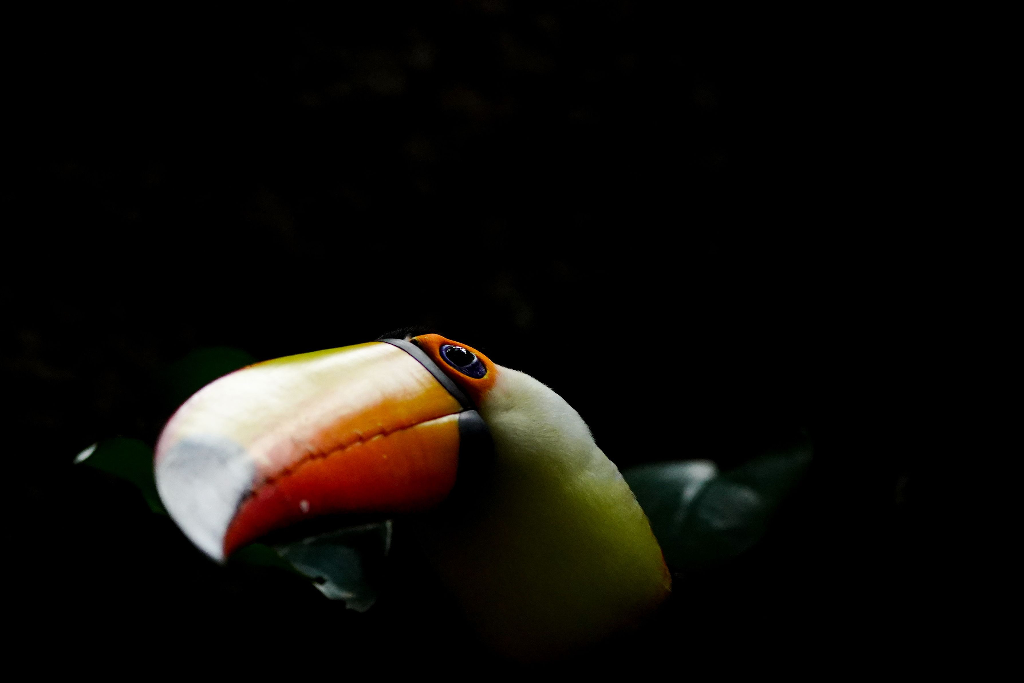 神戸どうぶつ王国 上に来た別の鳥を警戒するオニオオハシ
