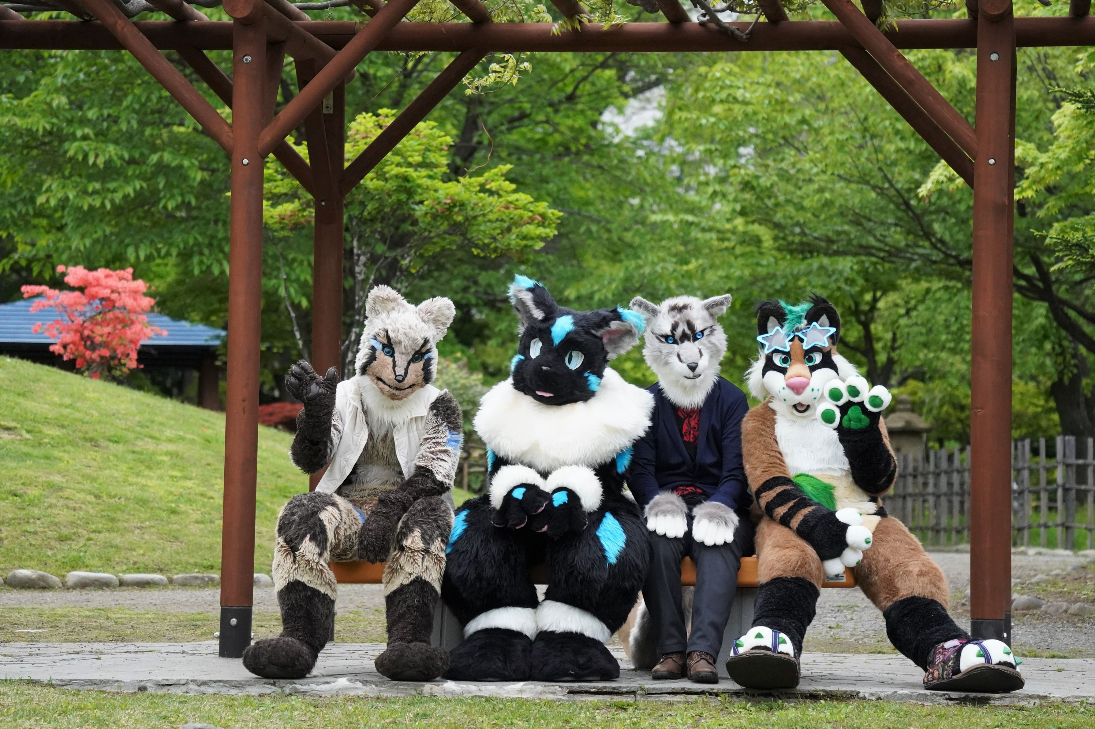 仲良し 四人組 歩きの遅い猫ちゃんを手をつないで歩いていました。(=^・^=)