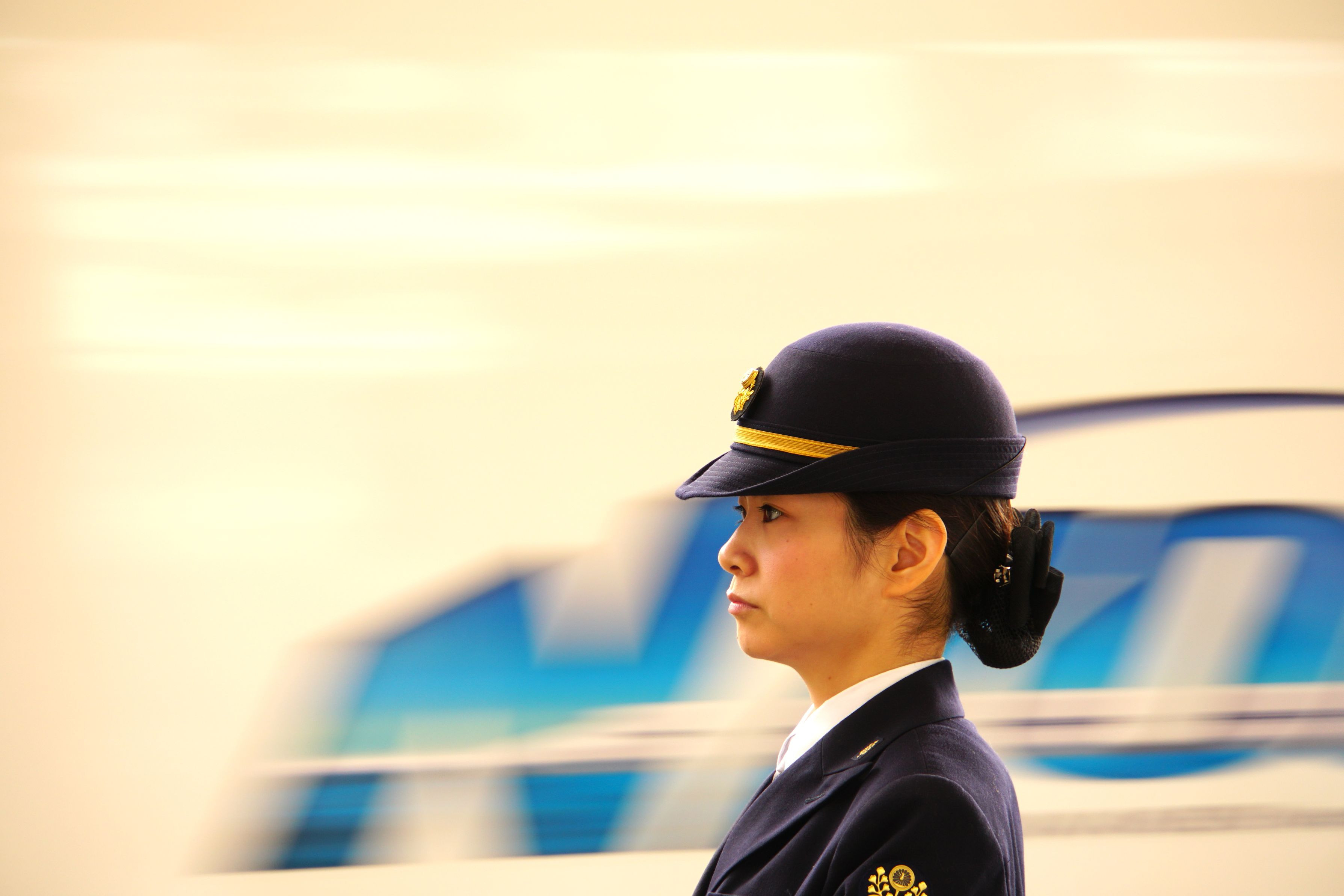 新大阪駅で新幹線の運行確認する車掌さん。 キリリとした表情が素敵でした。