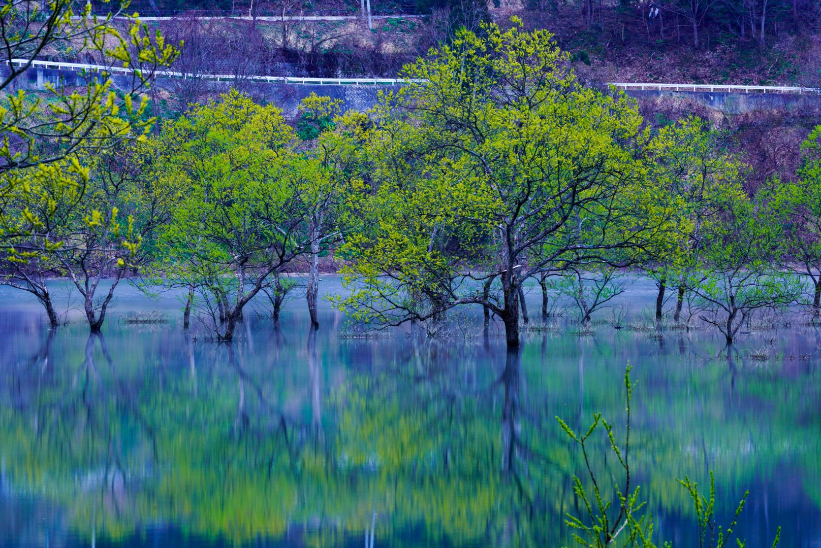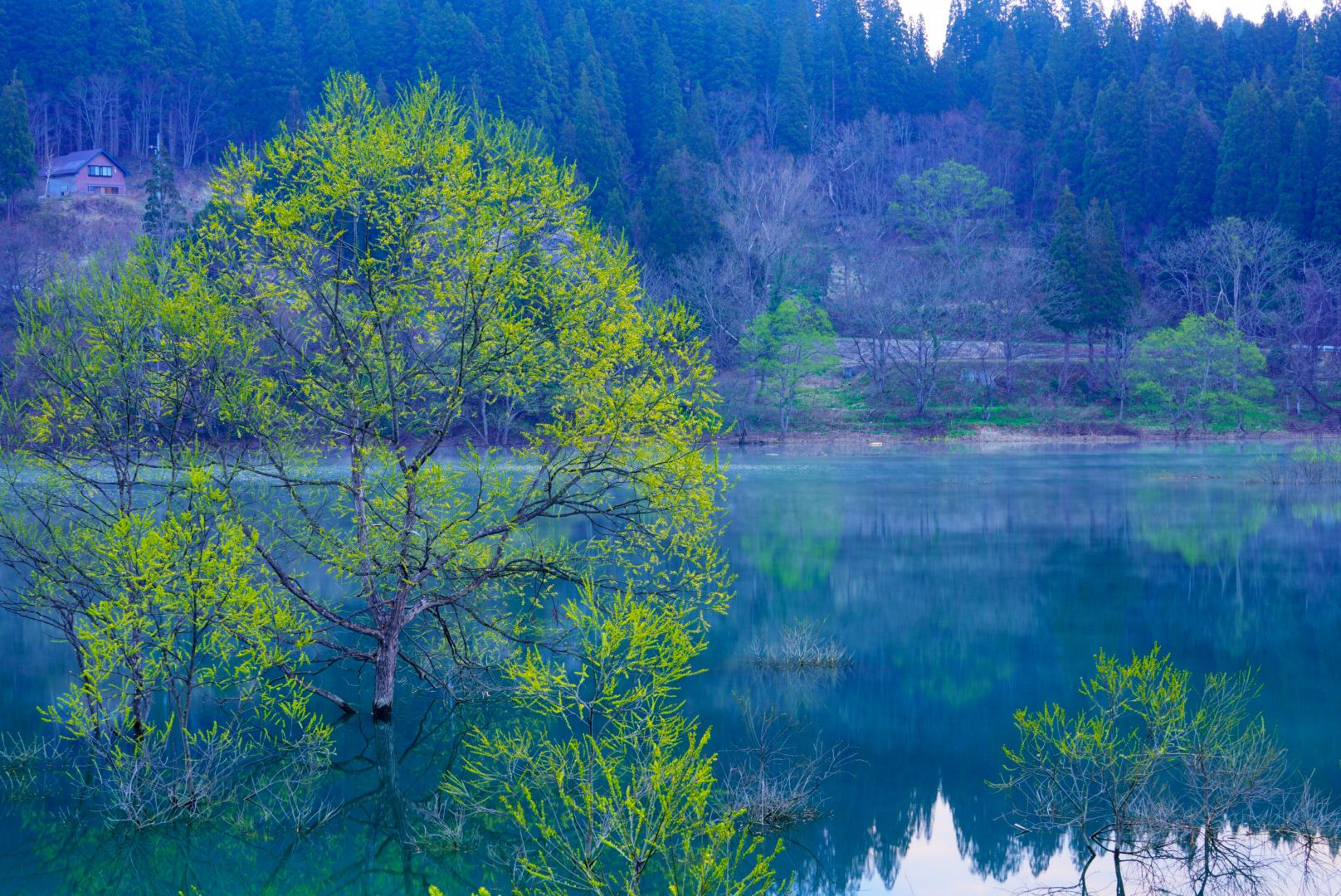 朝霧が漂う水没林と美しい湖色に目を奪われました♪ #山形県# 撮影地:白川湖