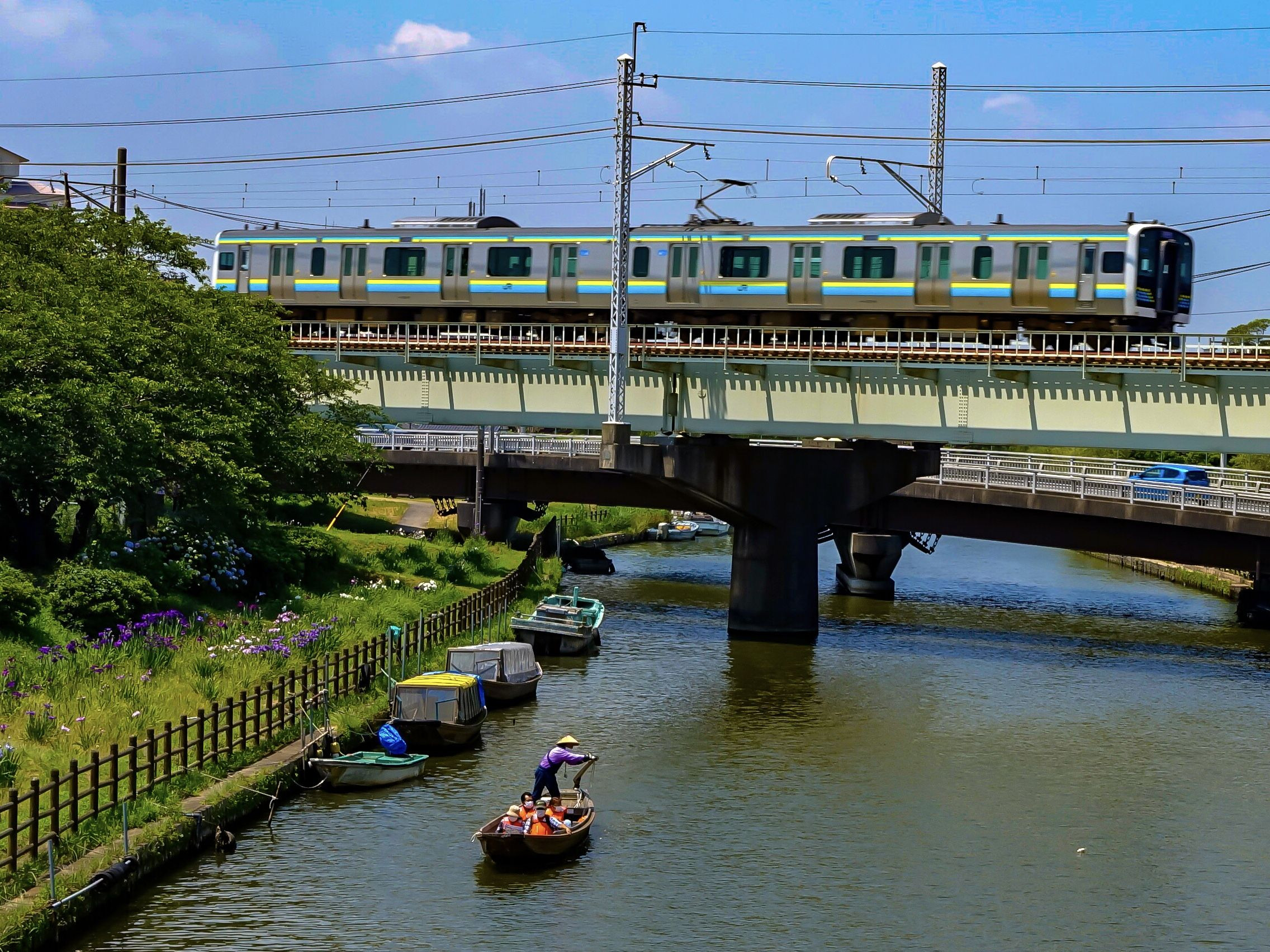 2021年6月10日 鹿島線 潮来~延方 E131系 鹿島線でも2021年3月13日のダイヤ改正でE131系を使用したワンマン列車が導入され、主役車両として活躍中! 風情のある水郷潮来十二橋巡りの舟と見頃を迎えているあやめの花、鹿島線を交えて撮影しました。 #JR東日本#