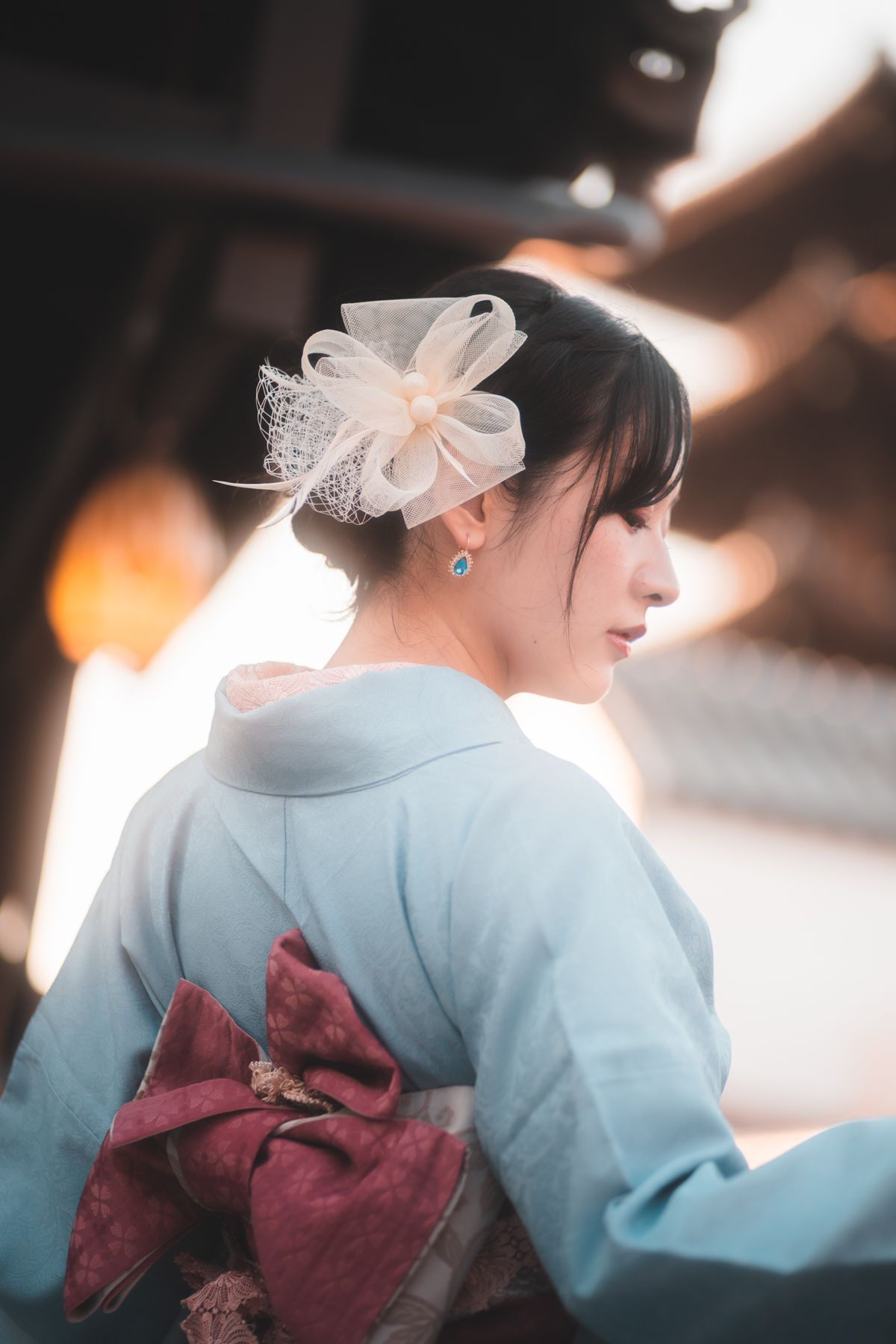 京都で和装撮影を依頼される事が多いのですが、その中の1枚。 とても綺麗な横顔ですよね。