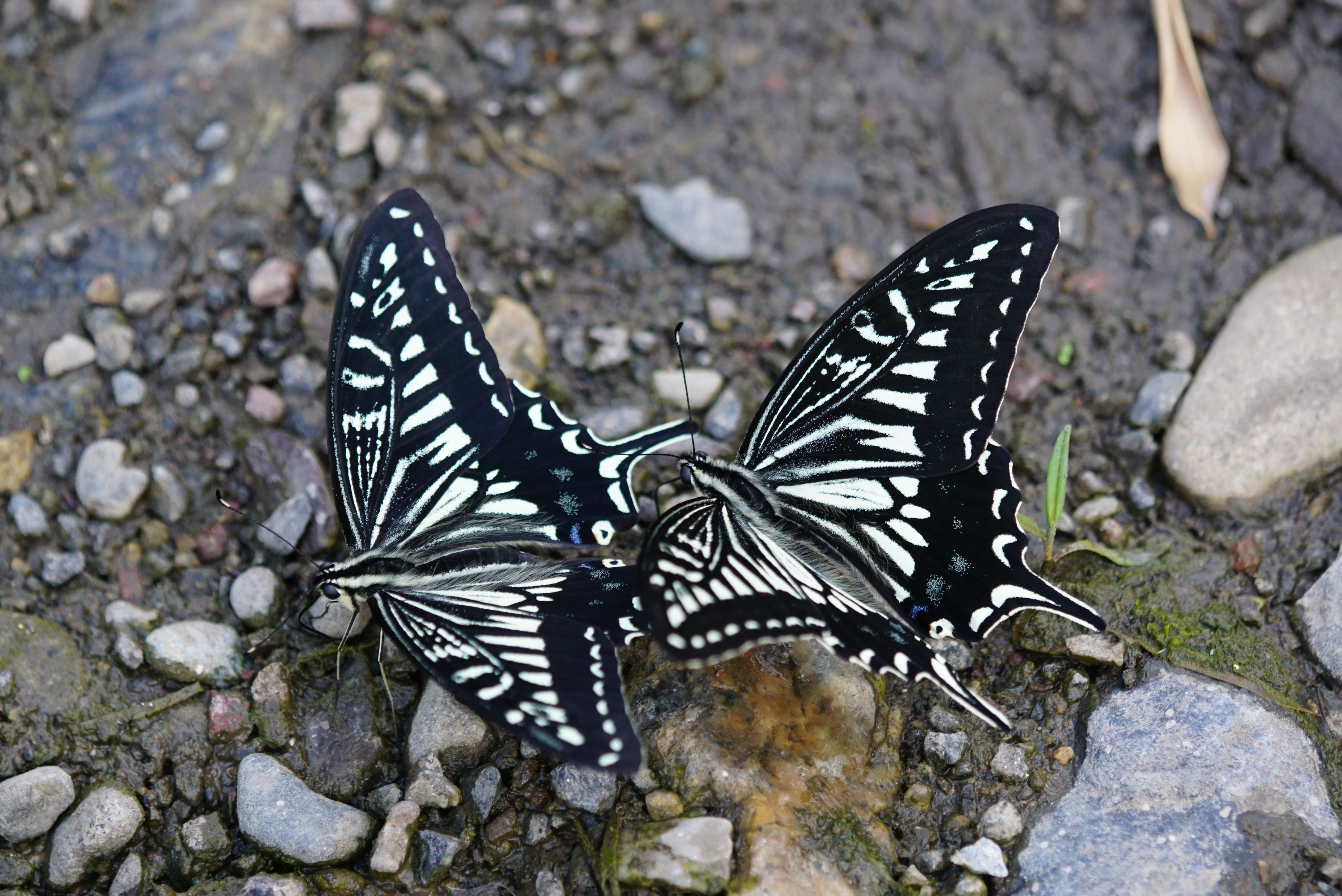 吸水と吸汁に分かれていた2頭のナミアゲハ・夏型の♂。今度は仲良く吸水です。