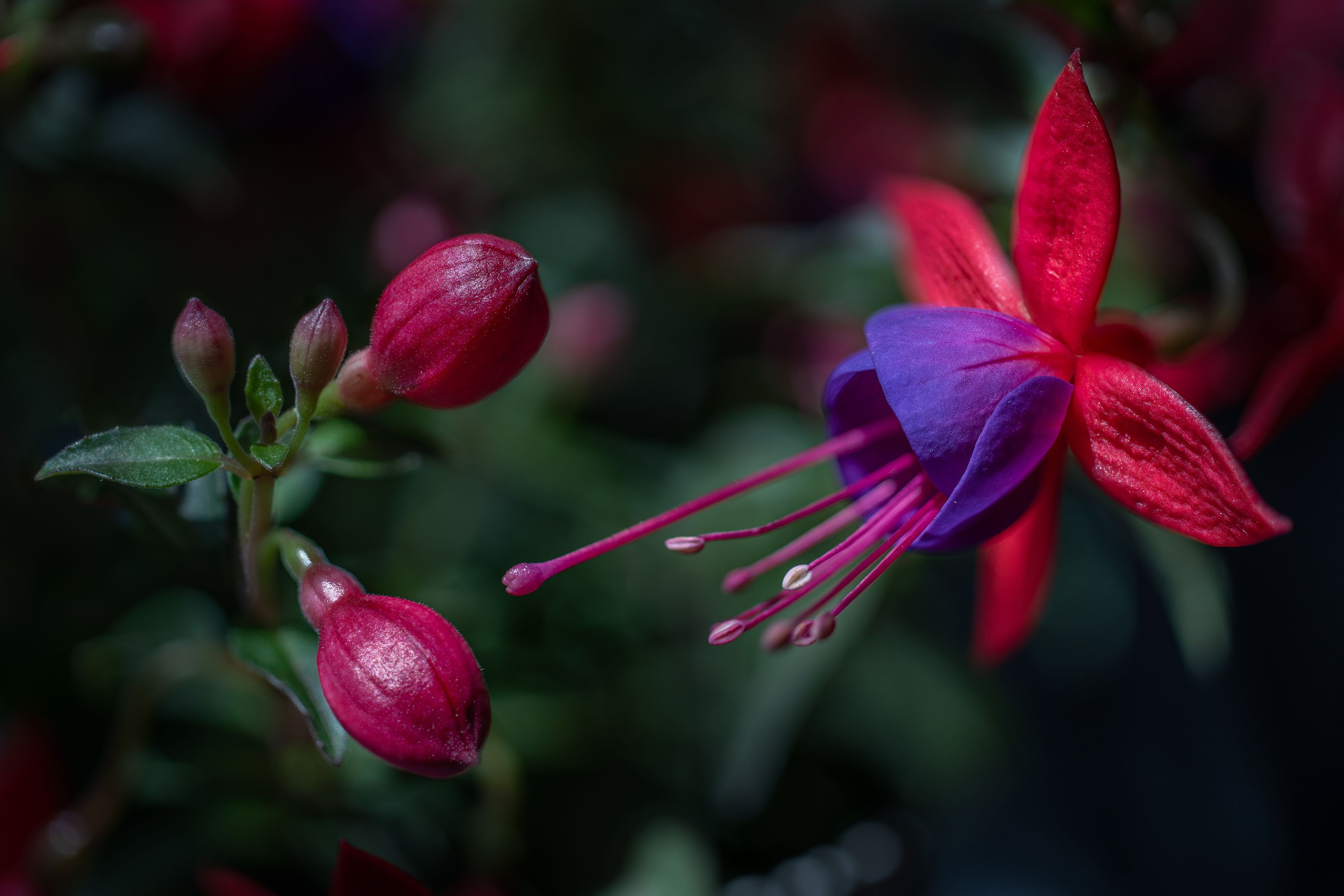 フクシア 色に感動し そのイメージを表現すべく撮影 太陽光の露出を落としただけで 彩度は触っていません コシナツァイスならではの色乗り? SONY α7Ⅲ Carl Zeiss Makro-Planar 2/50 ZE f/4、1/400sec、ISO-100、WB-4400K