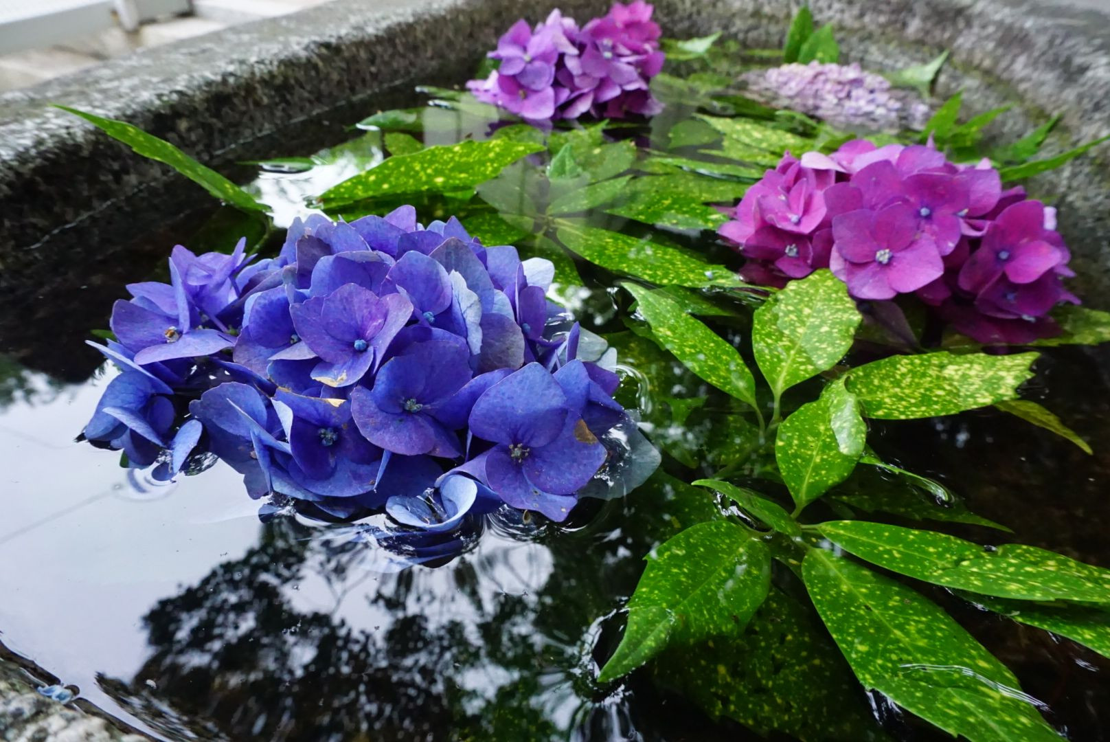 素敵な花手水💕 いつも京都、奈良まで参って花手水。 コロナ禍で県外に行くことが出来ない中 愛媛でも花手水を見れるとこが出来て感謝です(*^^*) お祓いも出来ました…ありがとうございます。