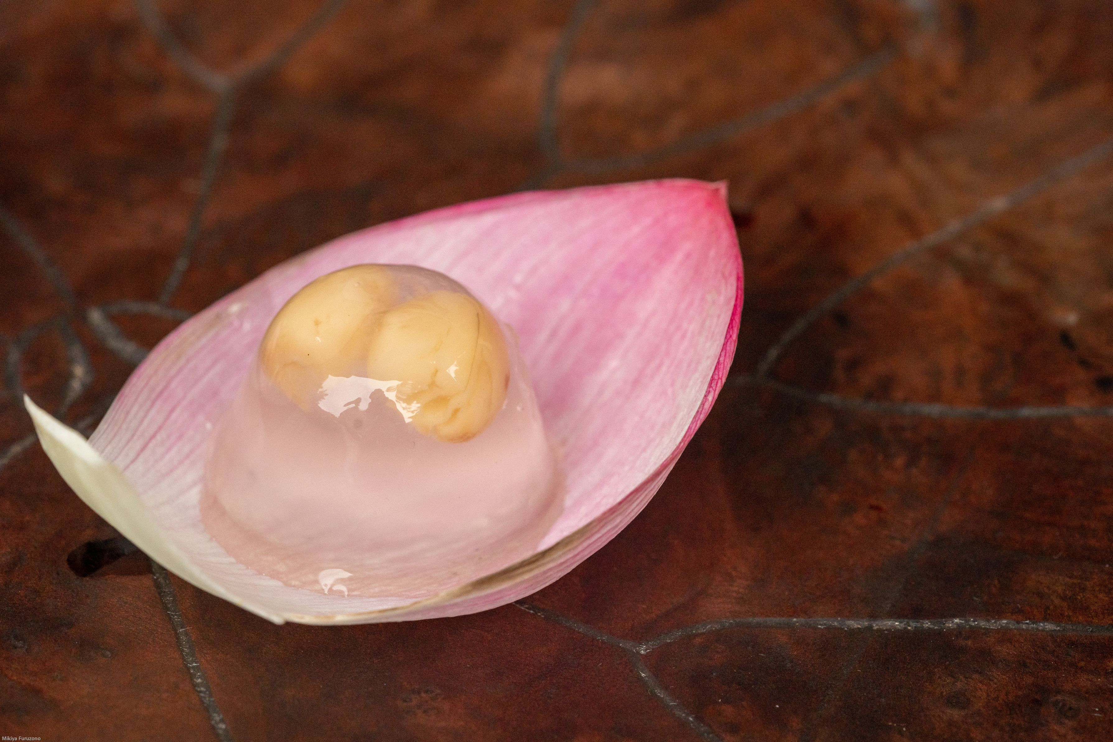 蓮の実ゼリー on 蓮の花 at 蓮の形のお盆