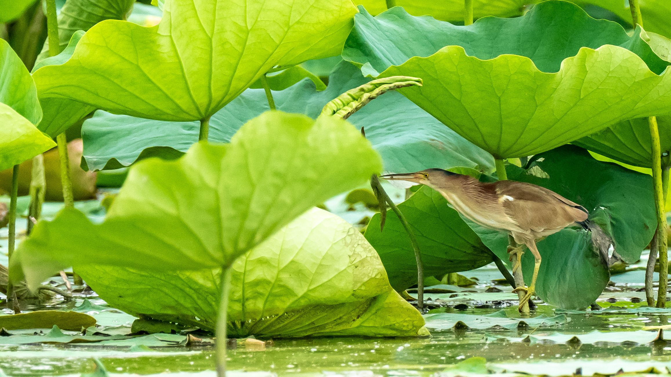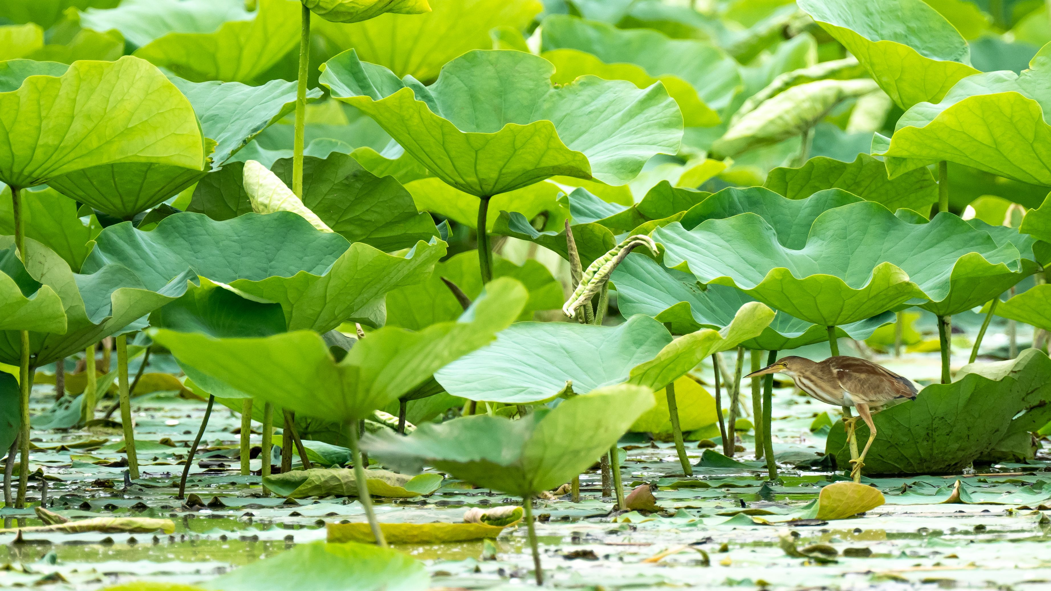 蓮が随分大きくなってきました。 なんとか姿を見せてくれた#ヨシゴイ#です。^^