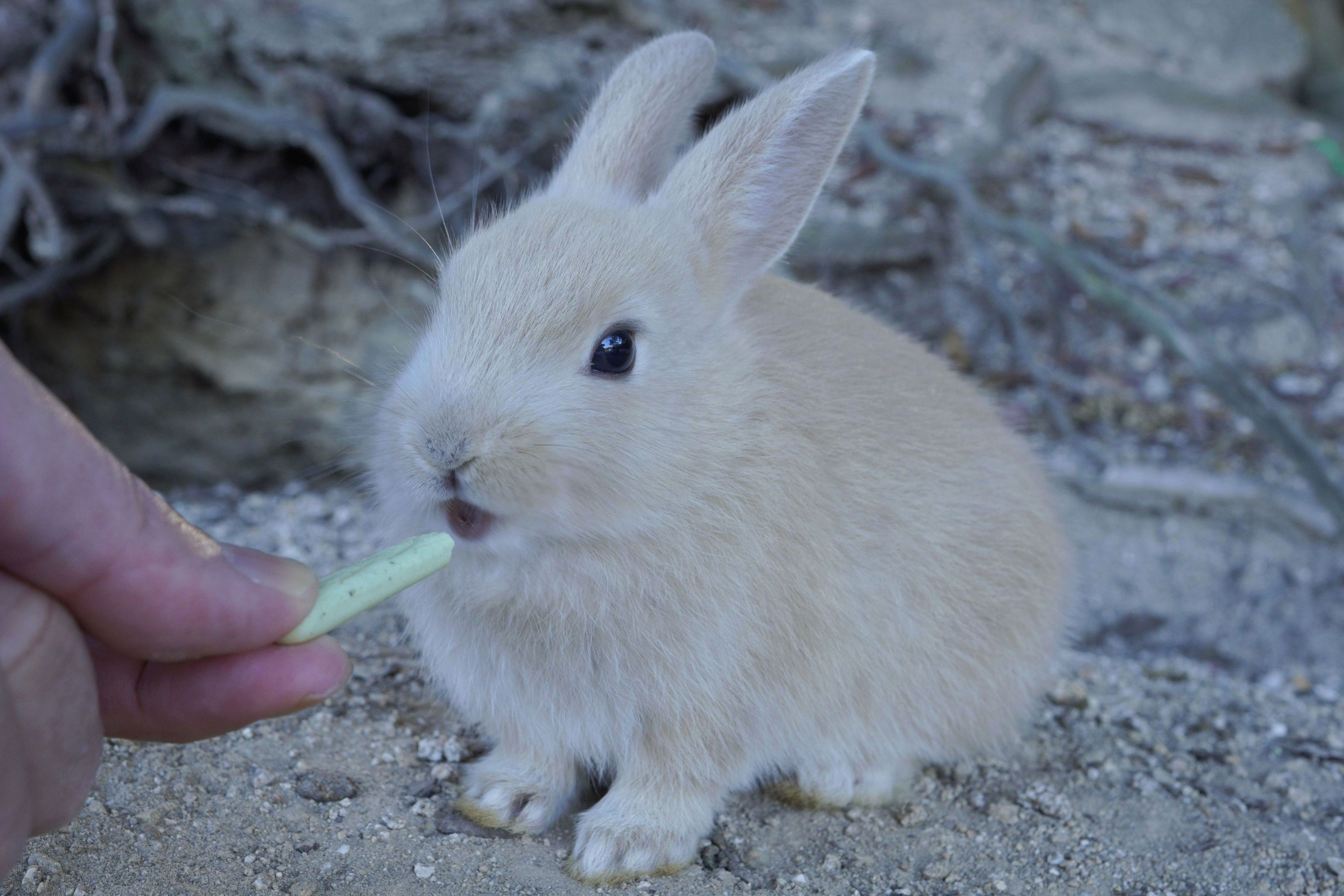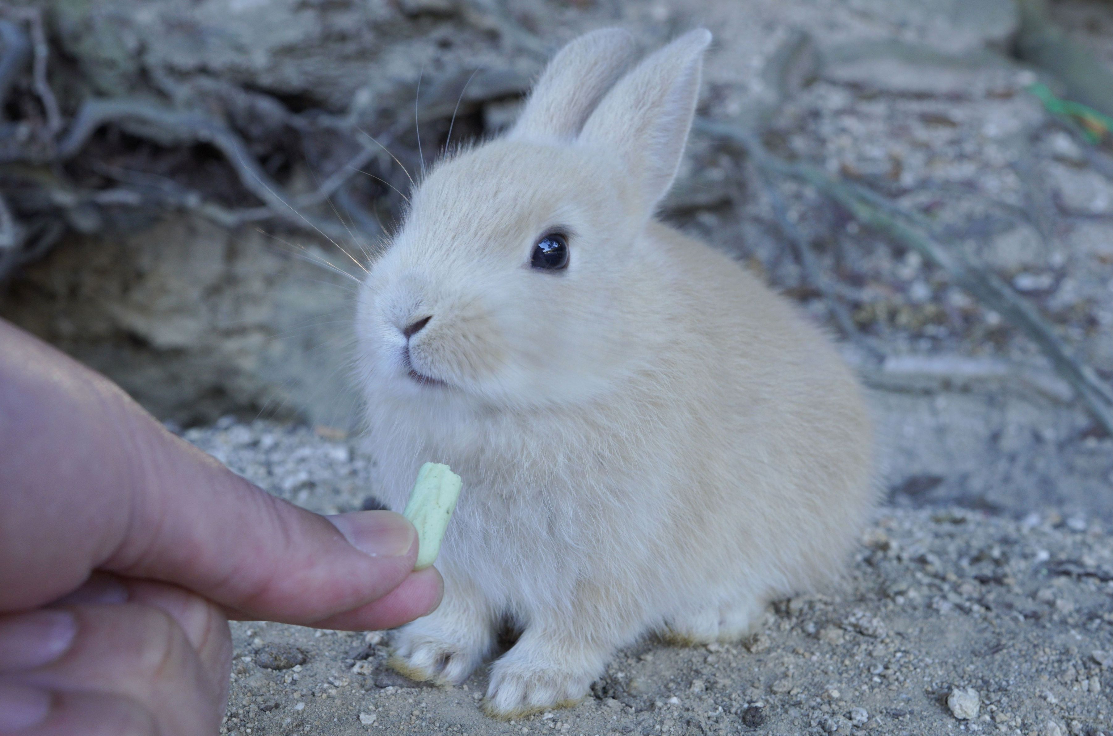 表情豊かな子ウサギさんと以前出会いましたよ。 大きな人間を見てちょっとドギマギしていましたが、何とかオヤツをエサにコミュニケーションを取る事が出来ました。 とても可愛い子でしたよ(*^▽^*)