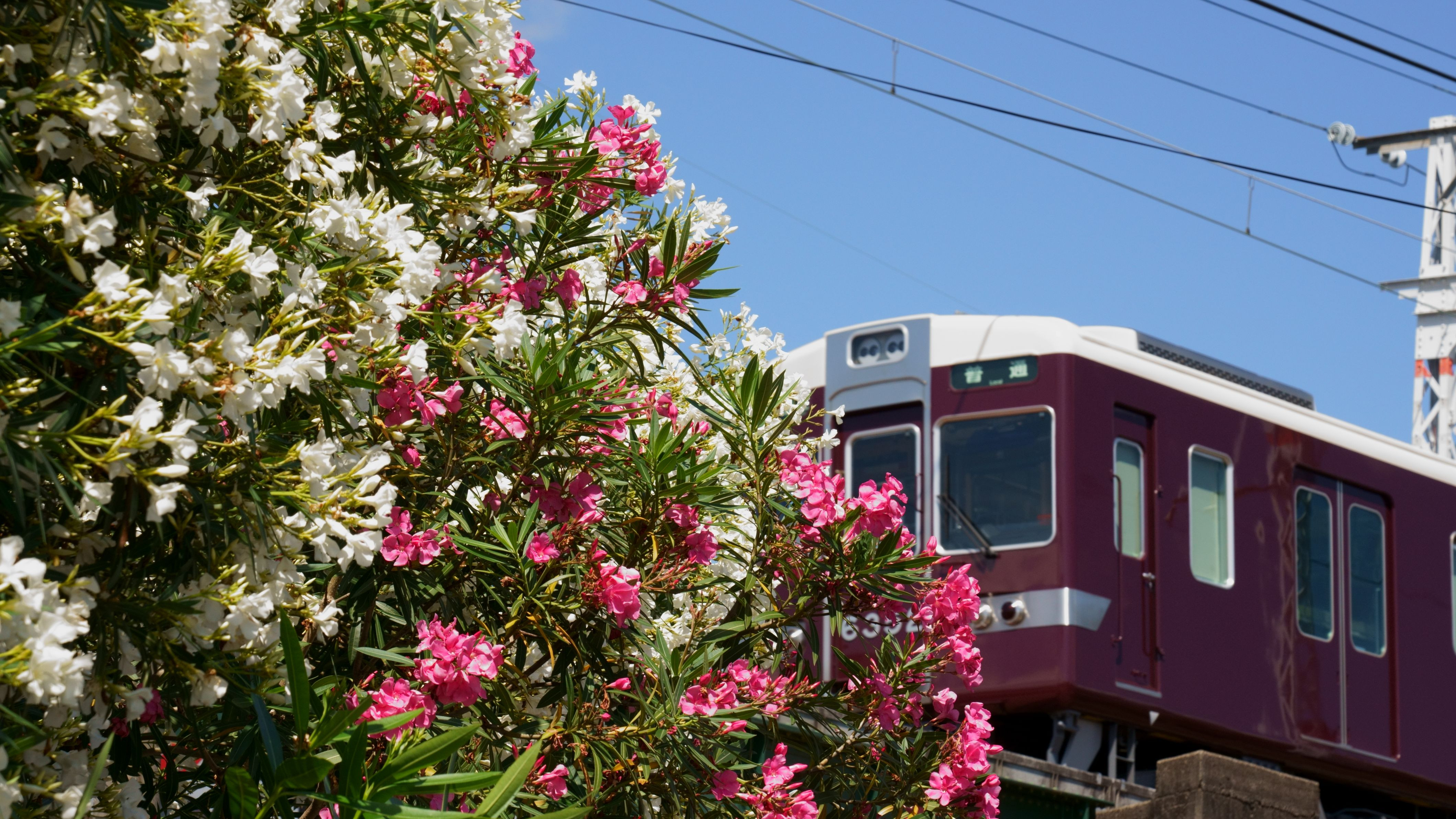 マルーン色の阪急電車に映えて 早くも初夏の兆しです