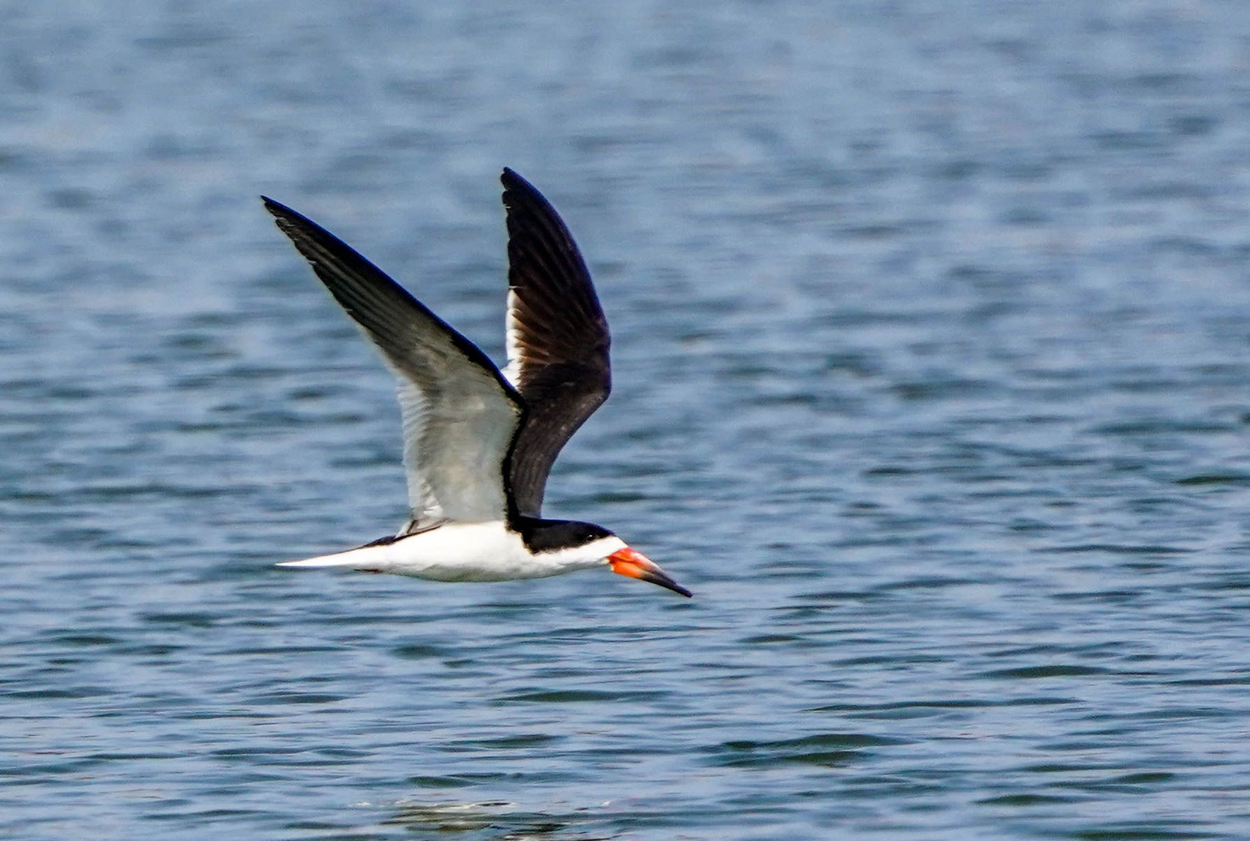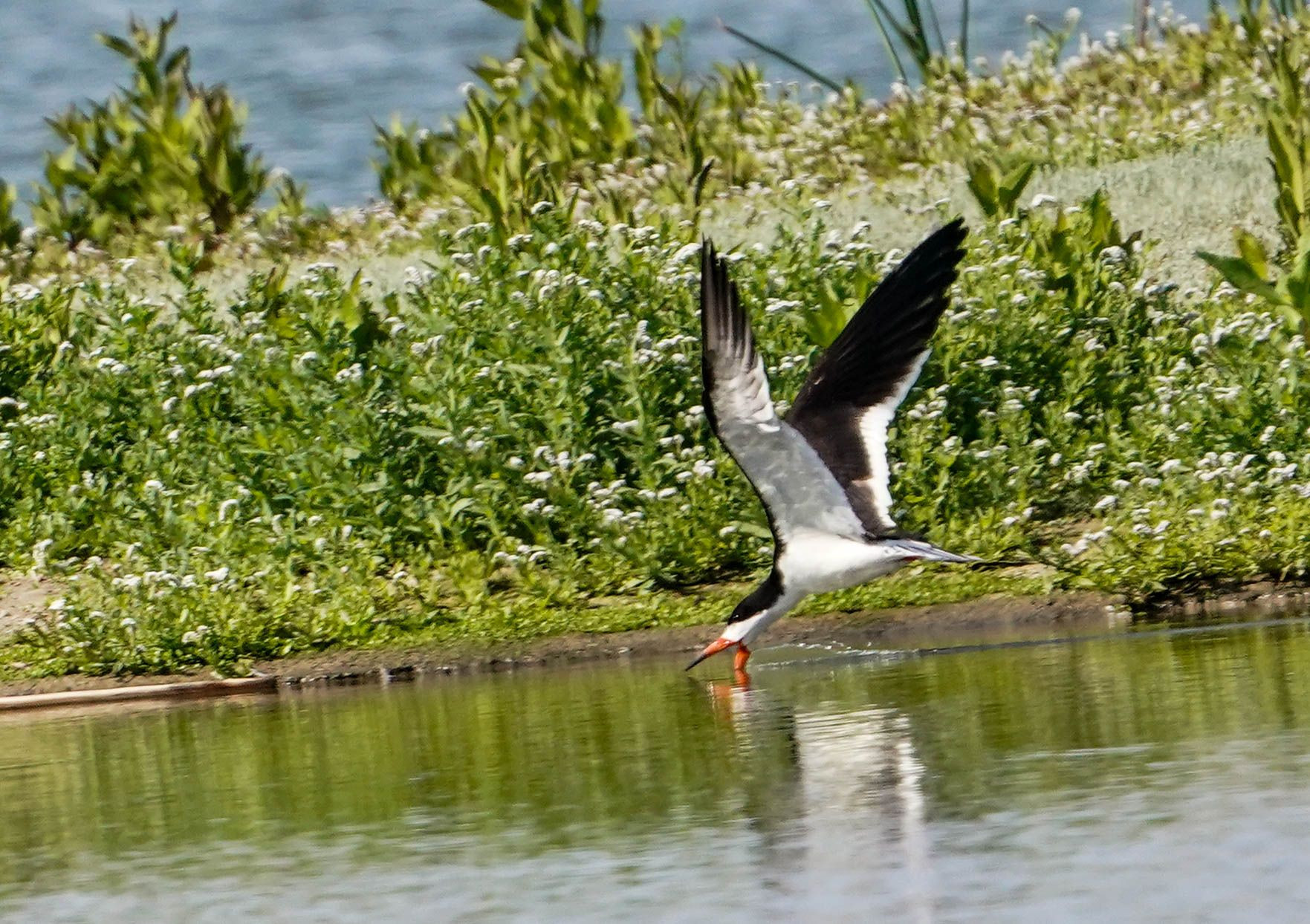 撮影地:San Joaquin Wildlife Sanctuary, Irvine, California アジサシの仲間で北米、中南米に生息する。水面上を超低空飛行し、水面の下に下嘴を入れ魚をすくい上げるように捕食する。そのために下嘴が上嘴より長い。