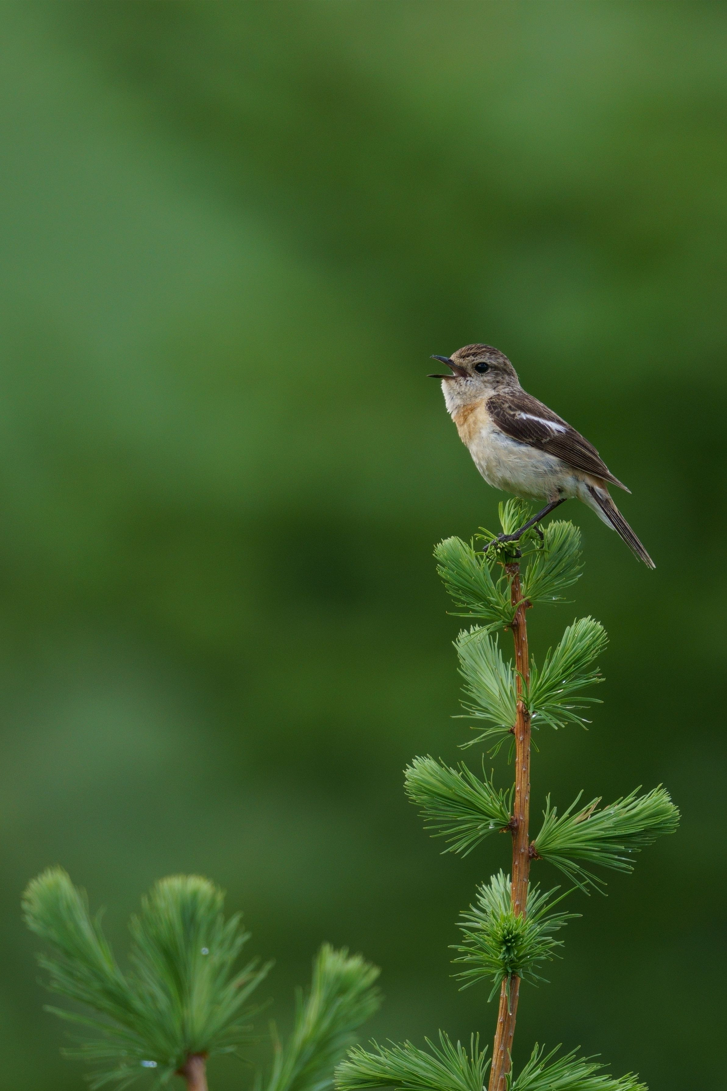 落葉松の上で、ノビちゃん歌う