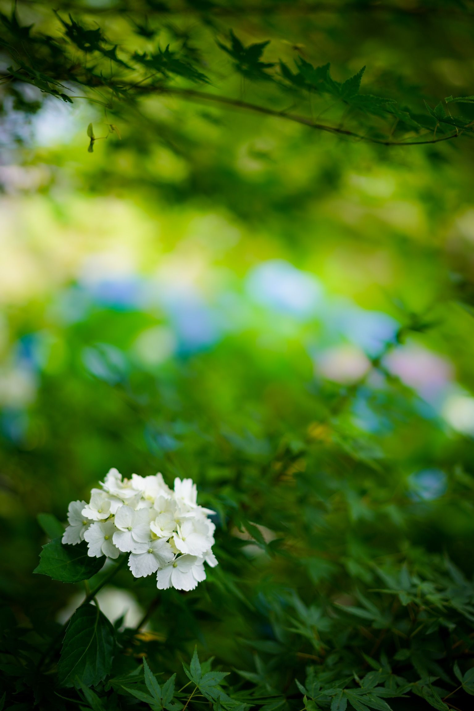 色鮮やかな紫陽花を背景に、純白の1株と周囲の青紅葉をメインにしてみました。紅葉が赤く染まる頃には、紫陽花の彩は見る影もないことでしょう。 本当に久しぶりの投稿となります。 忙しくて見れない間に沢山のお豆とコメントを頂き、ありがとうございます! ゆっくり返していきますm(_ _)m