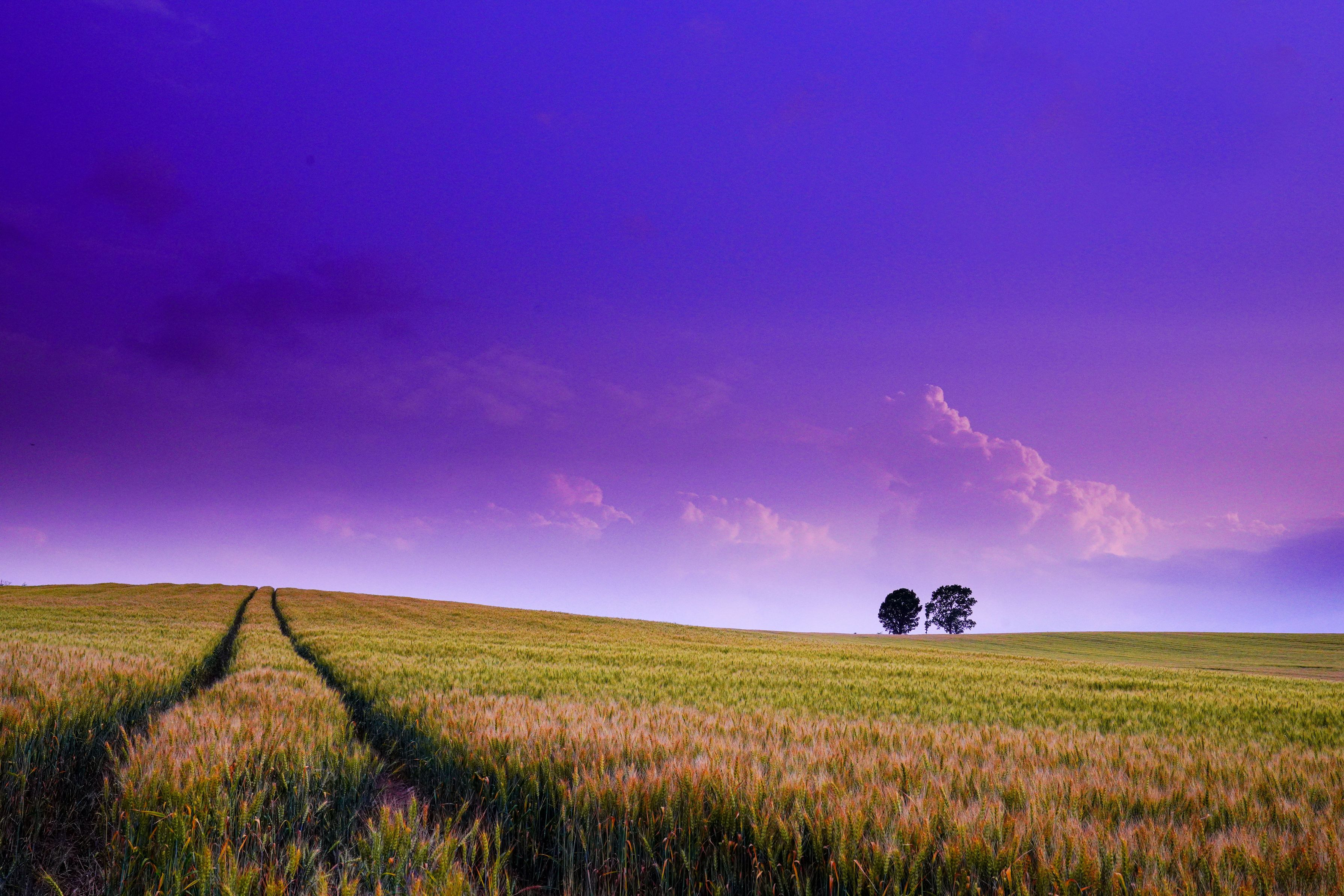広大な麦畑にトラクターの跡が 北海道美瑛町
