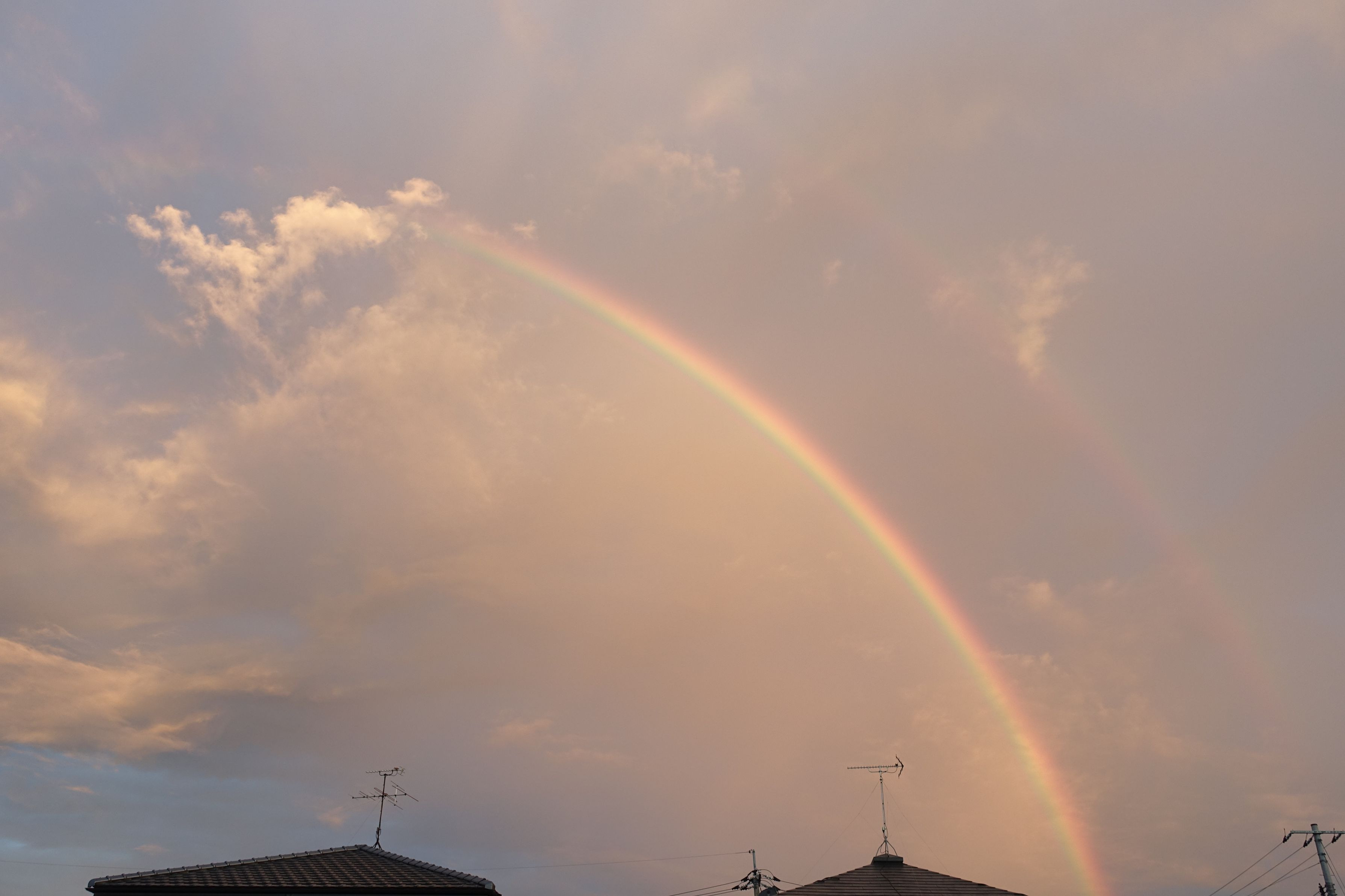 雨上がりの早朝。 二重の虹がかかっていました。 ちょっと得した気分でした。
