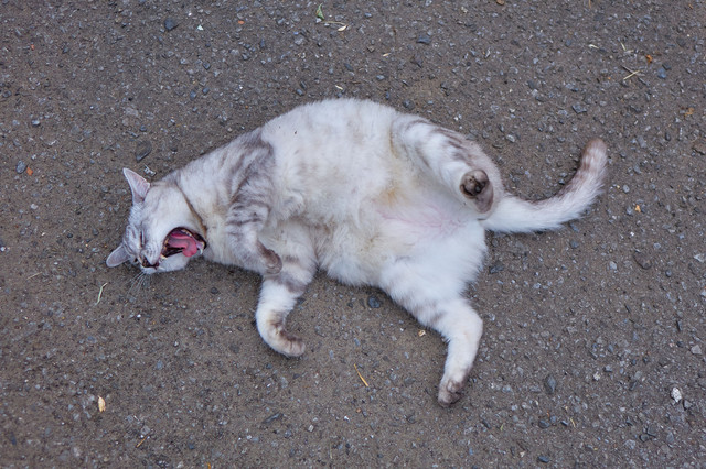 暑いのは苦手なんですよね・・ しかも、仕事が忙しくて・・持病の腰痛まで悪化・・ 家に居る時は・・クーラーの下で休養と称してダラダラ・・ 散歩に行こうと思っても・・腰が痛くて思うように体が動かない・・ そんな時に、姿を見る様なネコさんに出会った・・ 分かったよ・・此れからはダラダラしない様にしますよ・・