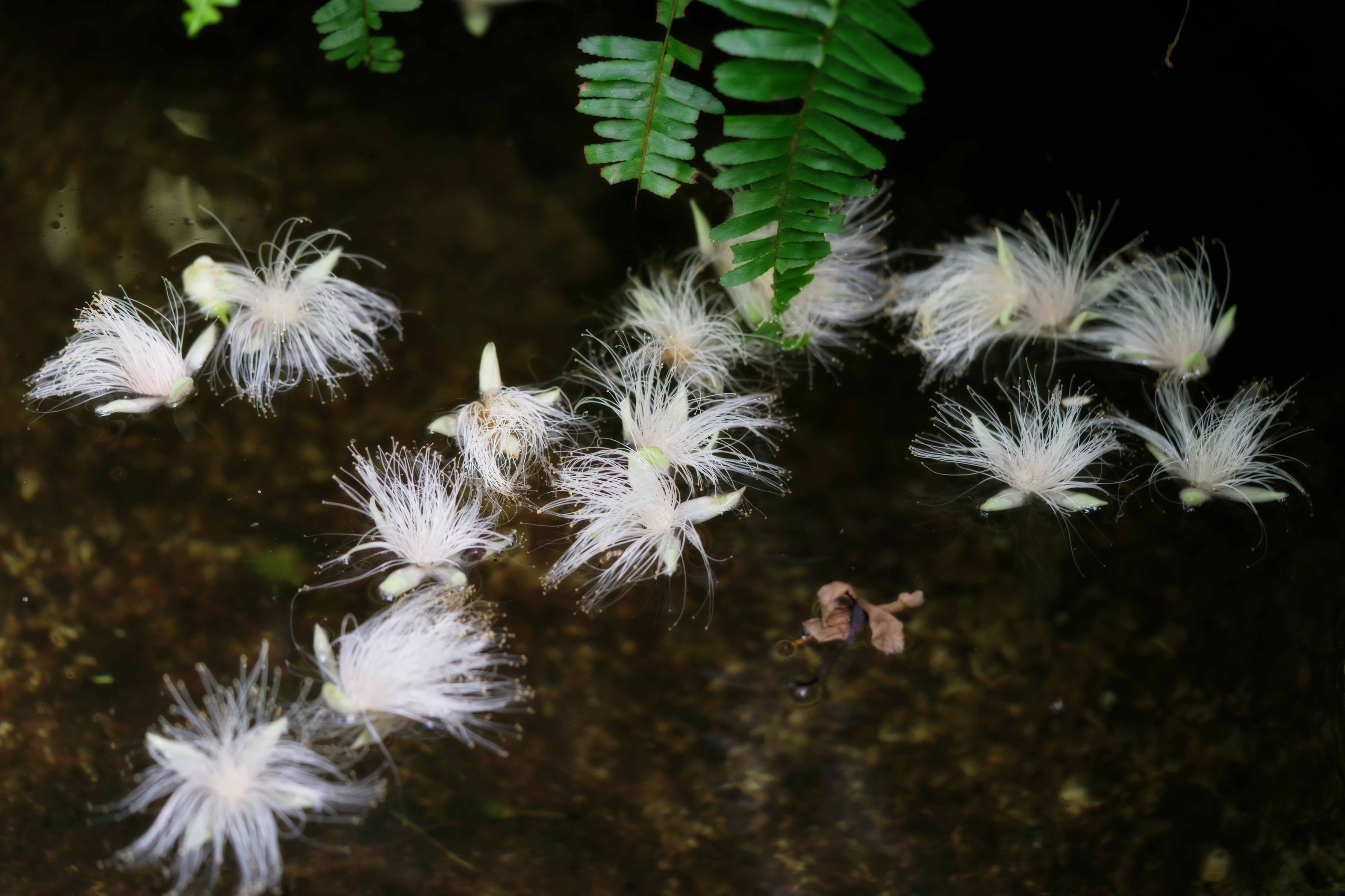 水の上に落ちたサガリバナが流れていきました。