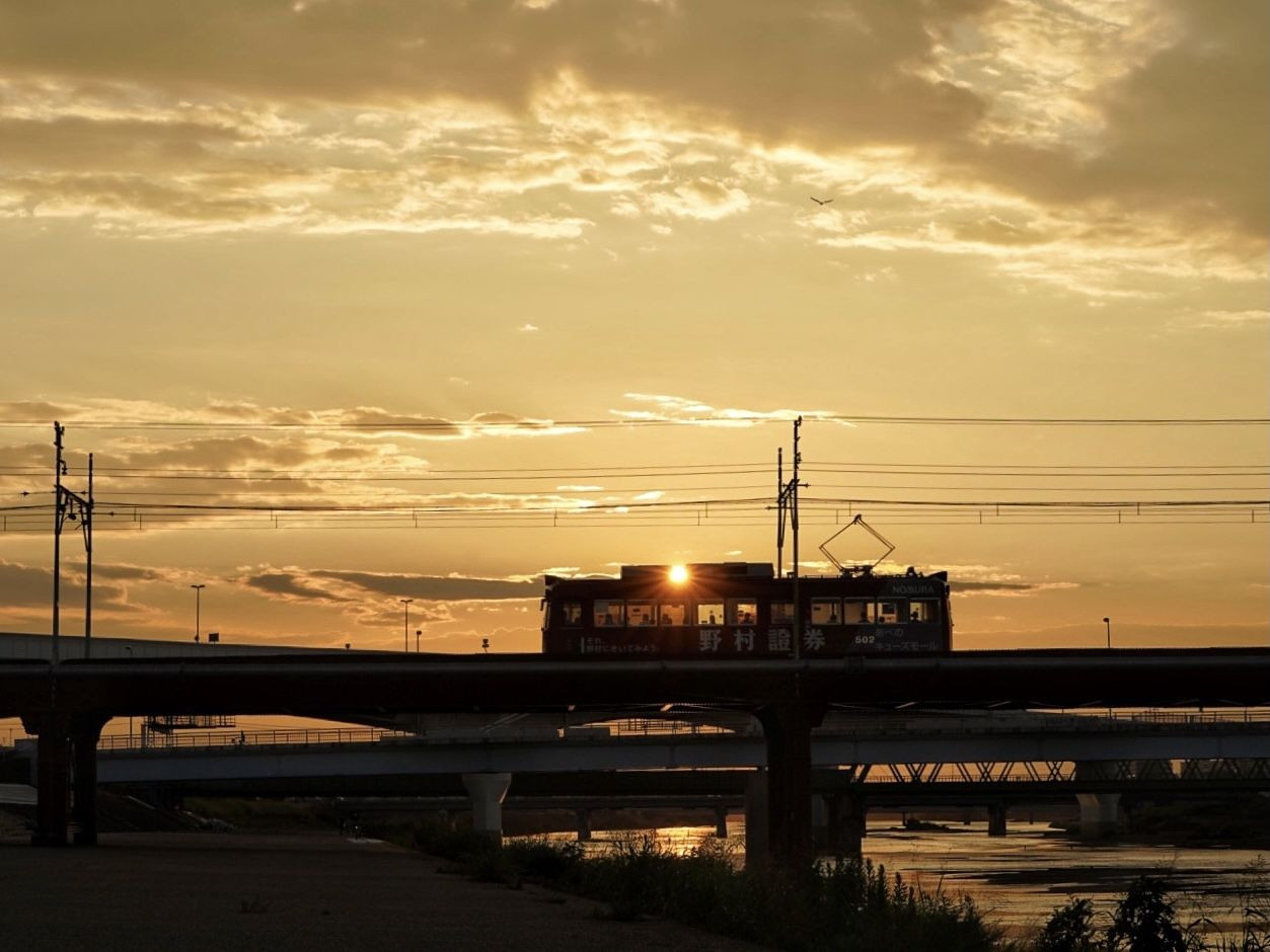 阪堺線が大和川を渡り始めた数分間を撮りました。 西日に照らされた車内がオレンジに透けて見え、中にどんな人が乗っているのか、など想像力を掻き立てられました。
