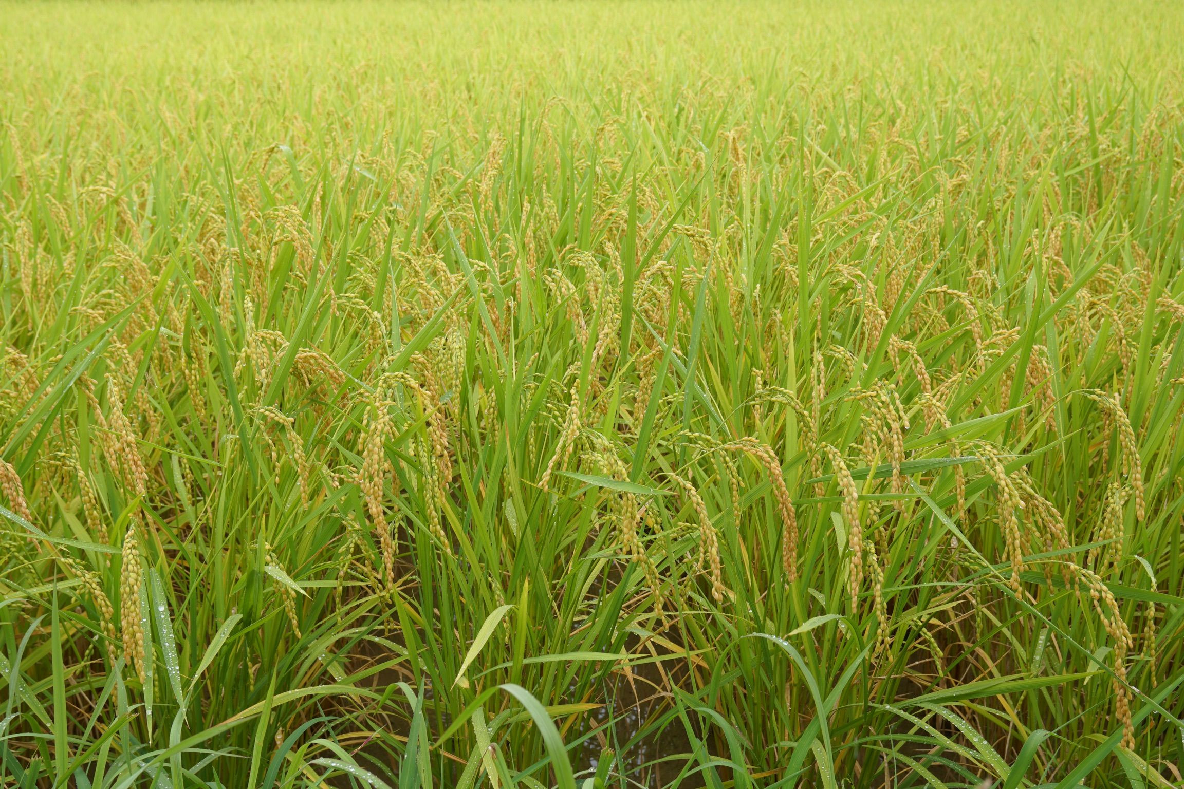 田んぼの中の霞む一本道