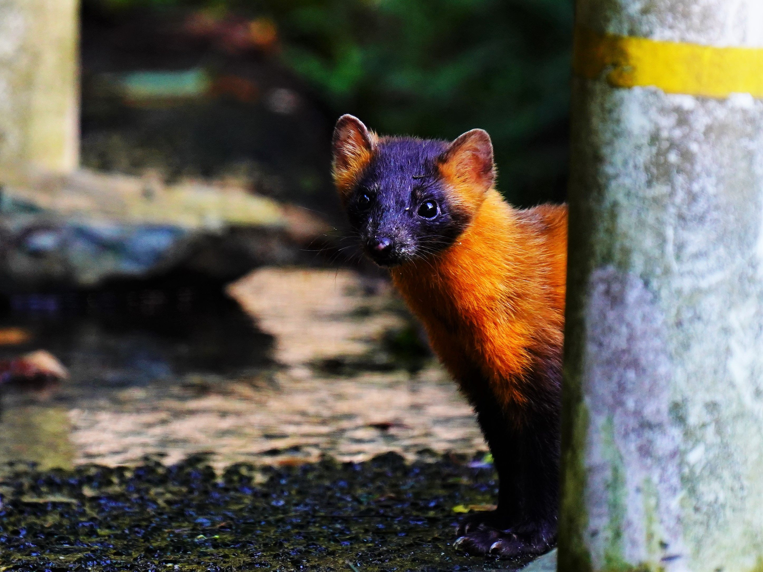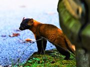 野鳥の水飲み場で撮影中にヒョッコリと テンが現れました。 野生のテンは初めて見ました。 アナグマかと思う位大きいんですね。