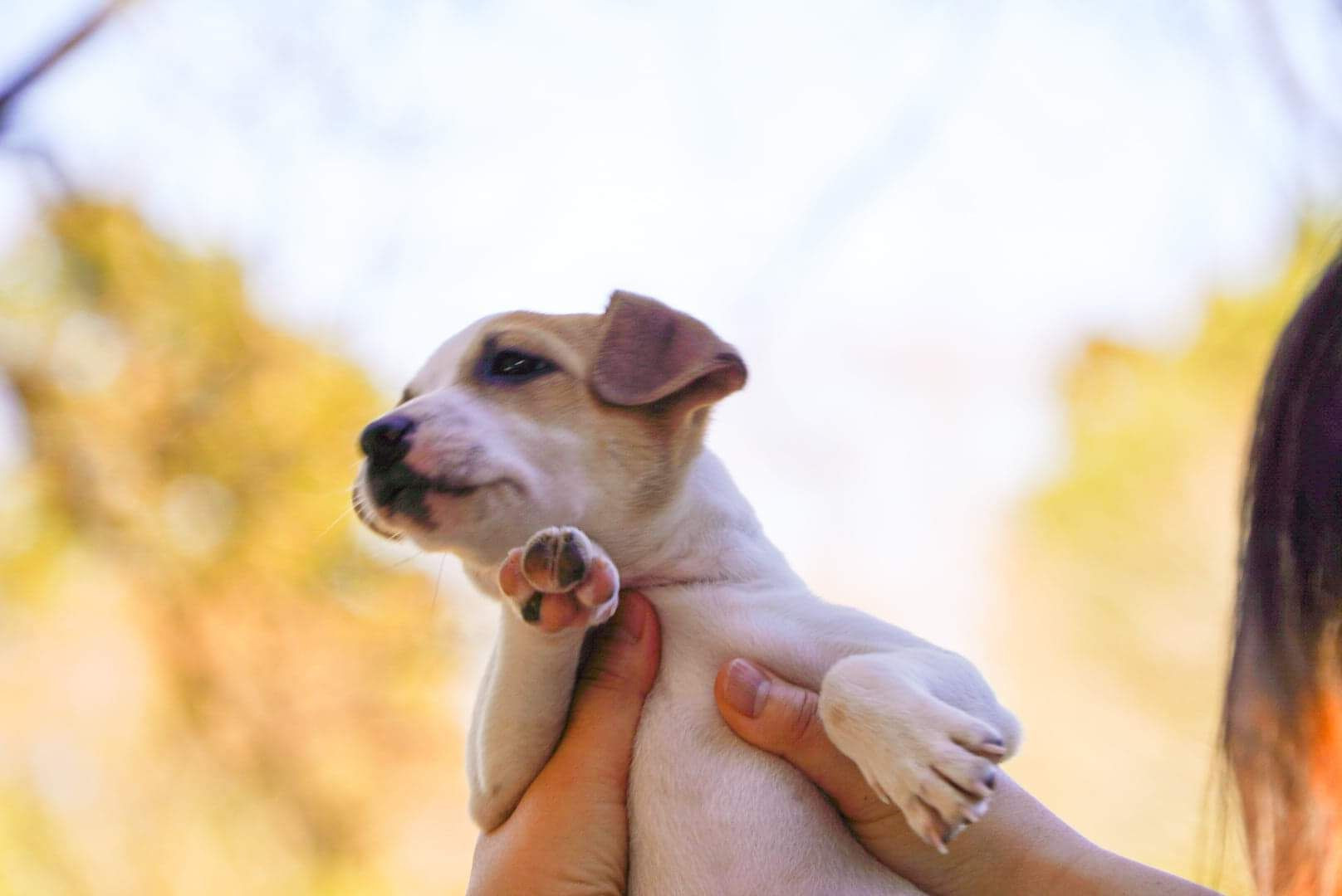 去年の秋頃に撮った写真。 暴れまわる子犬を抱き上げた時。