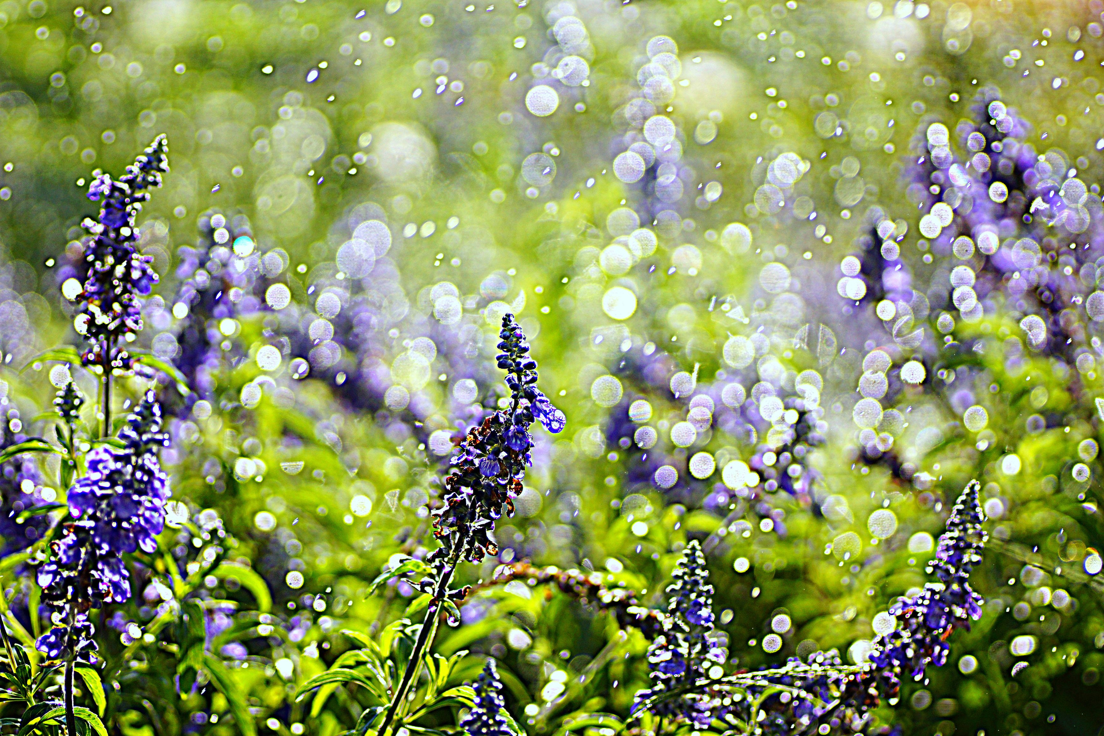 暑いですね。お花畑のシャワーで涼を演出してみました。