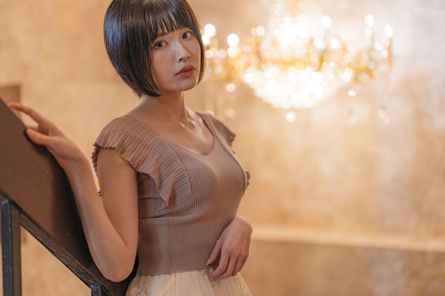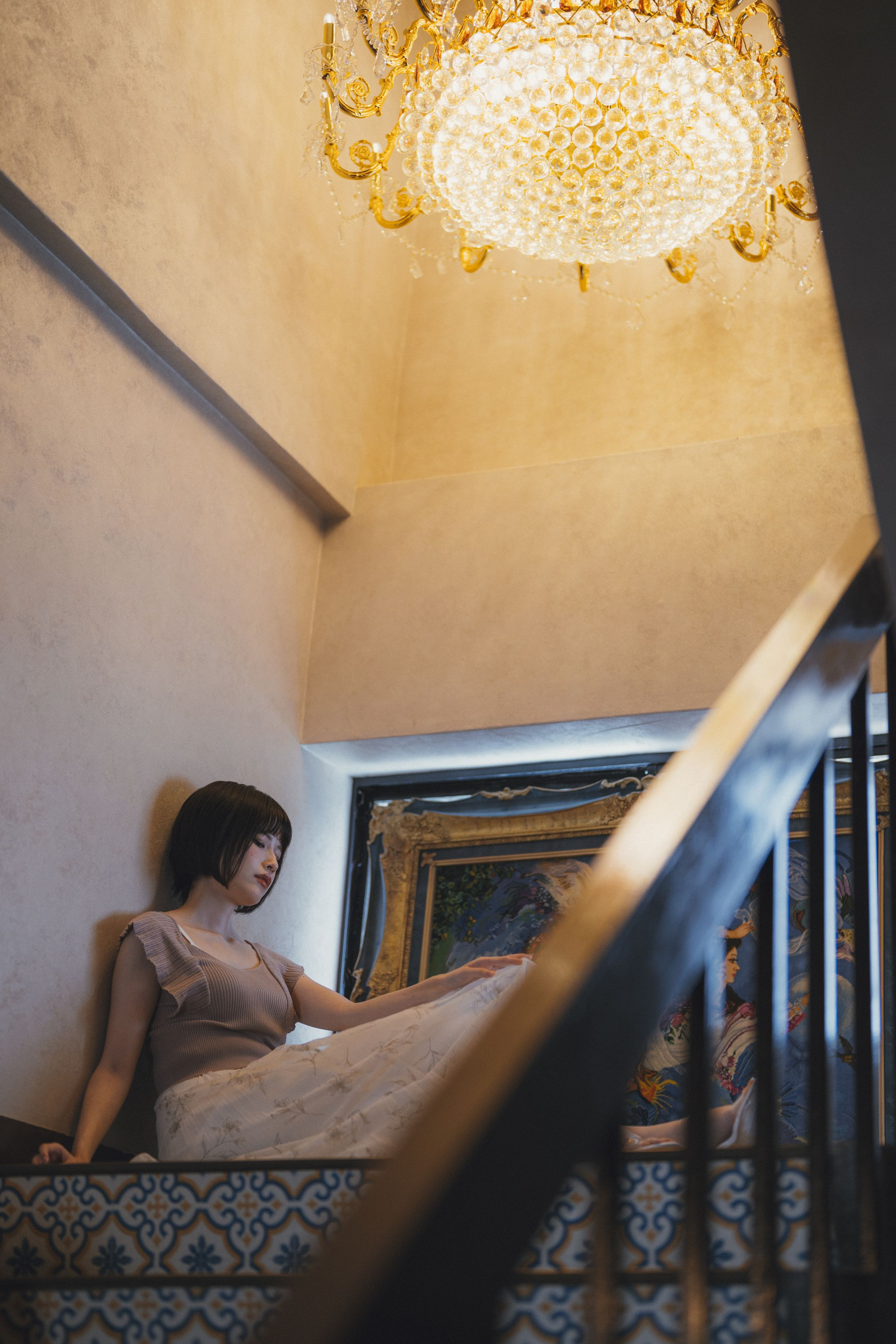 巨大なシャンデリアと美女