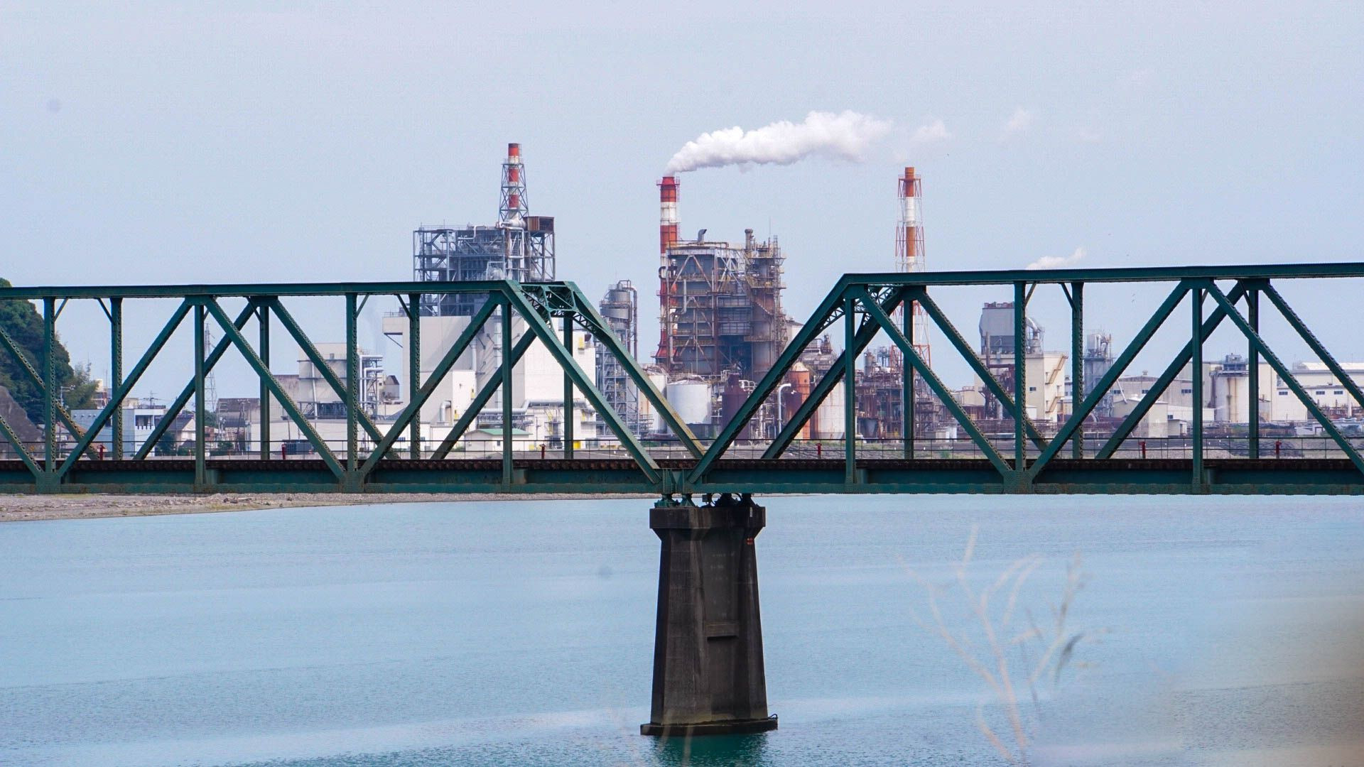 かなり前のモノですが、工場が橋の上に乗ってるように見えないかなあと思い撮影しました。 橋も微妙にずれてるのと、右端の杭を消したのですが跡が残ってしまいました。 この辺に、雑さが出てしまいますね。