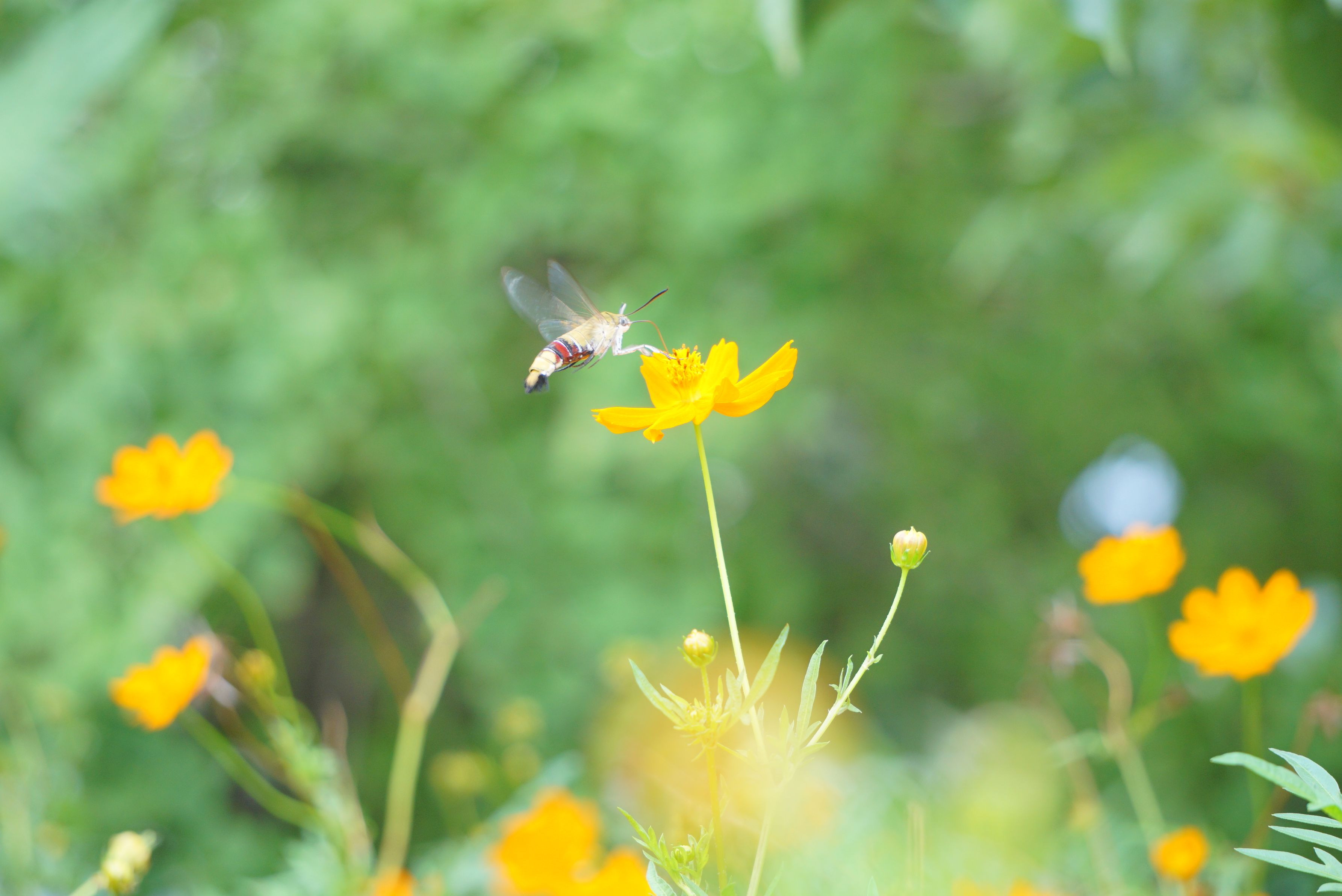 製品情報>My Sony>αcafe>キバナコスモスとオオスカシバ(ルナさん)
