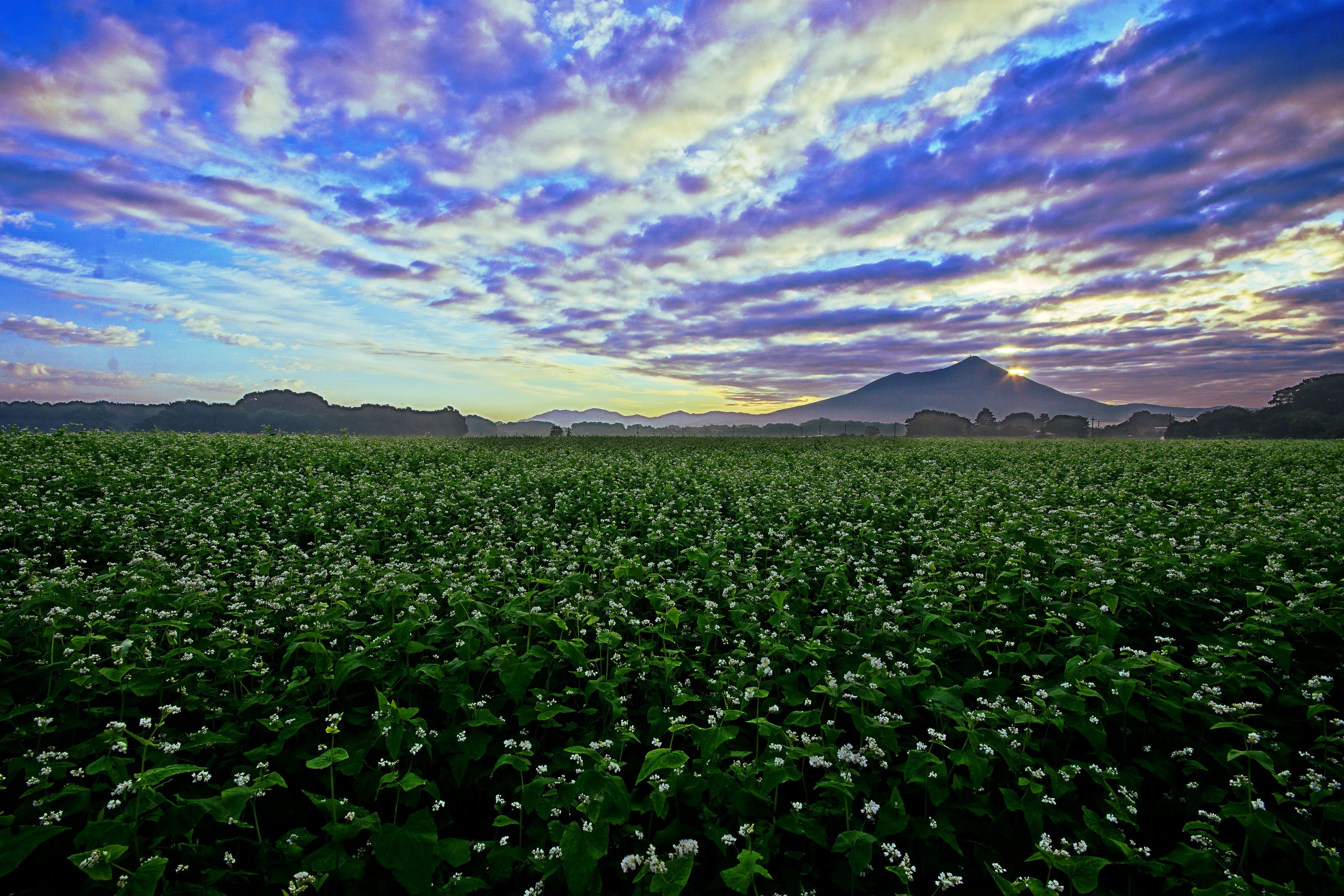 初秋の朝 蕎麦と筑波
